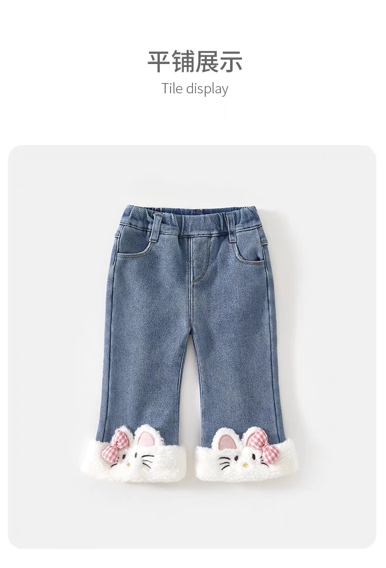여자 바지 겨울 2024 새로운 어린이 데님 꽃 바지 어린이 겨울 착용 아기 기모 캐주얼 바지스토어 가기