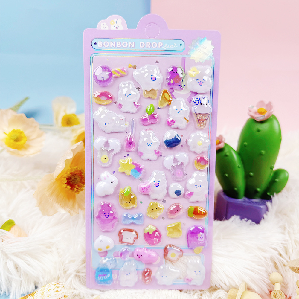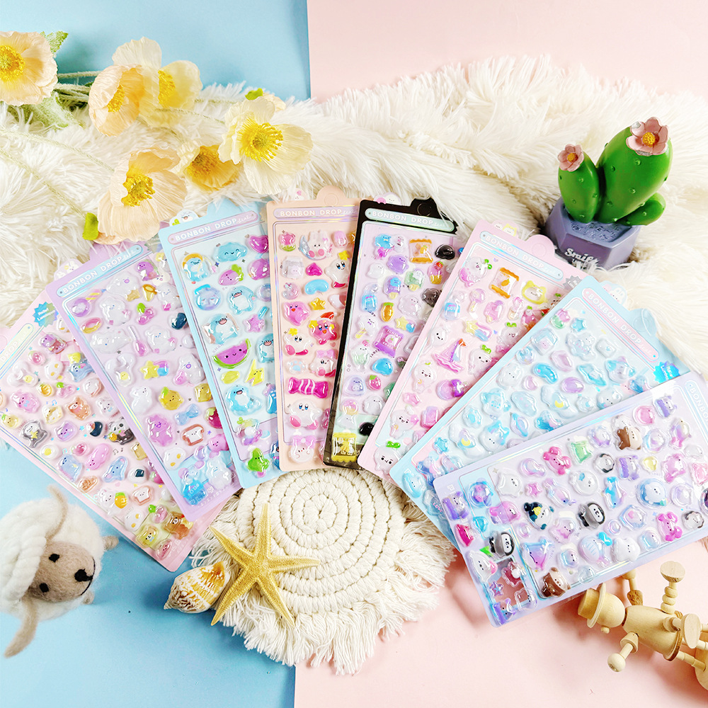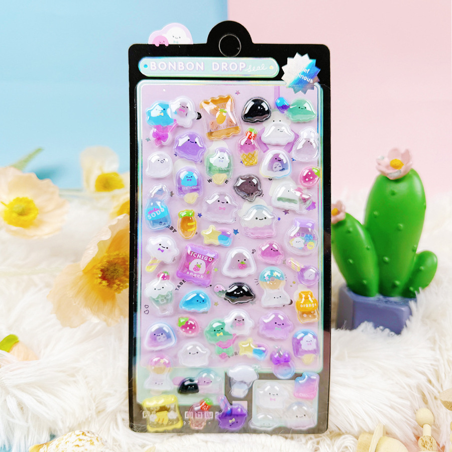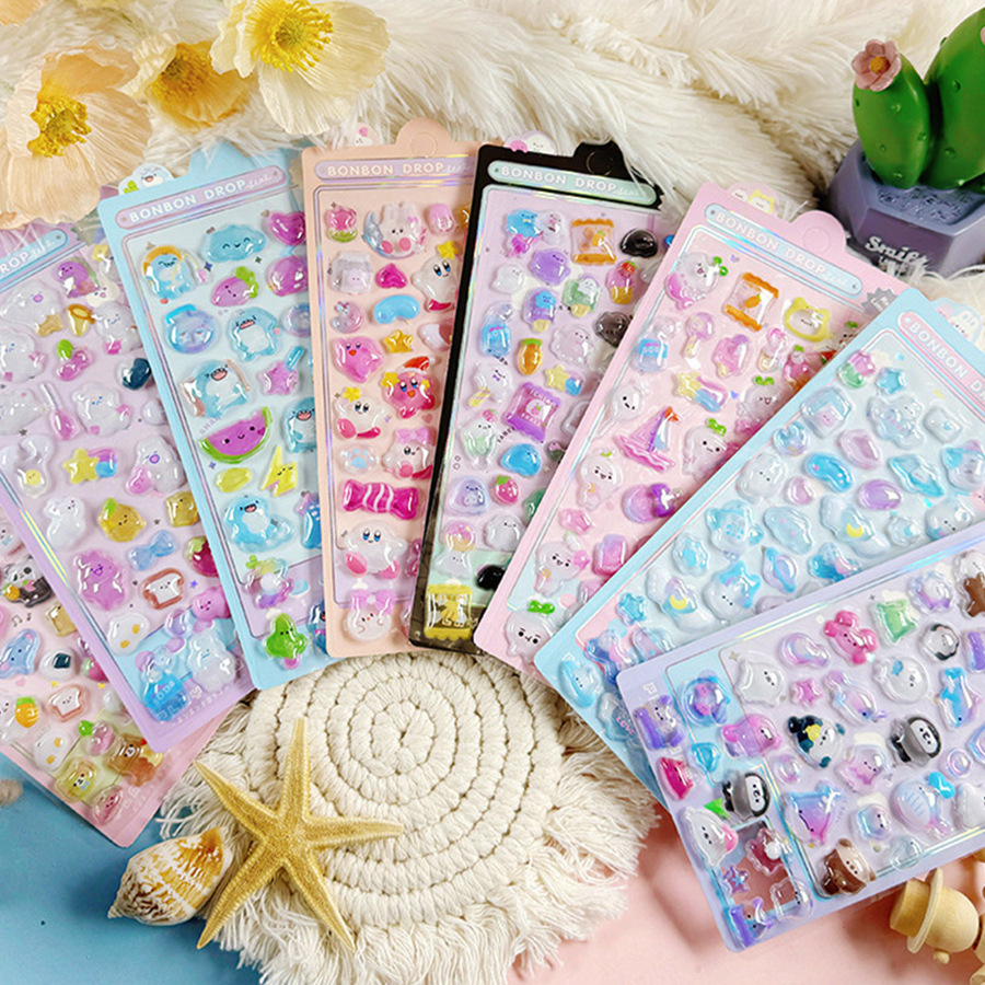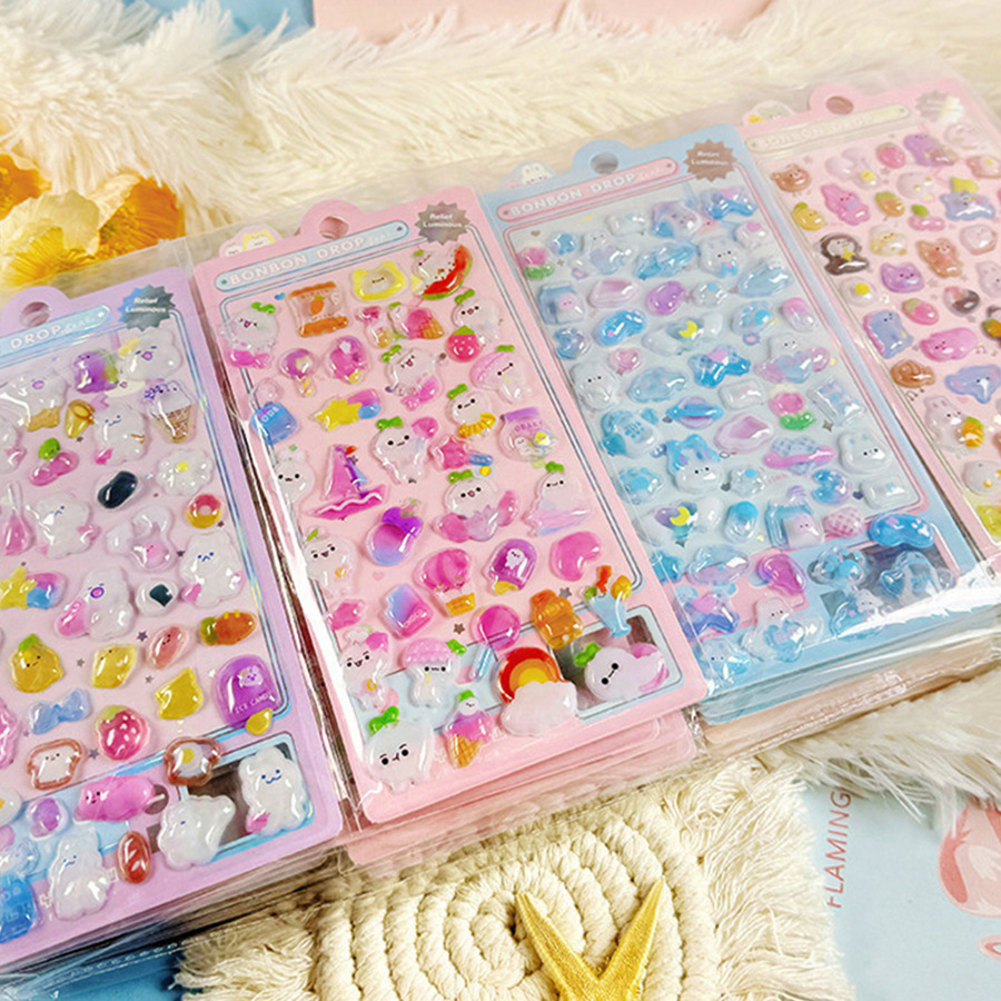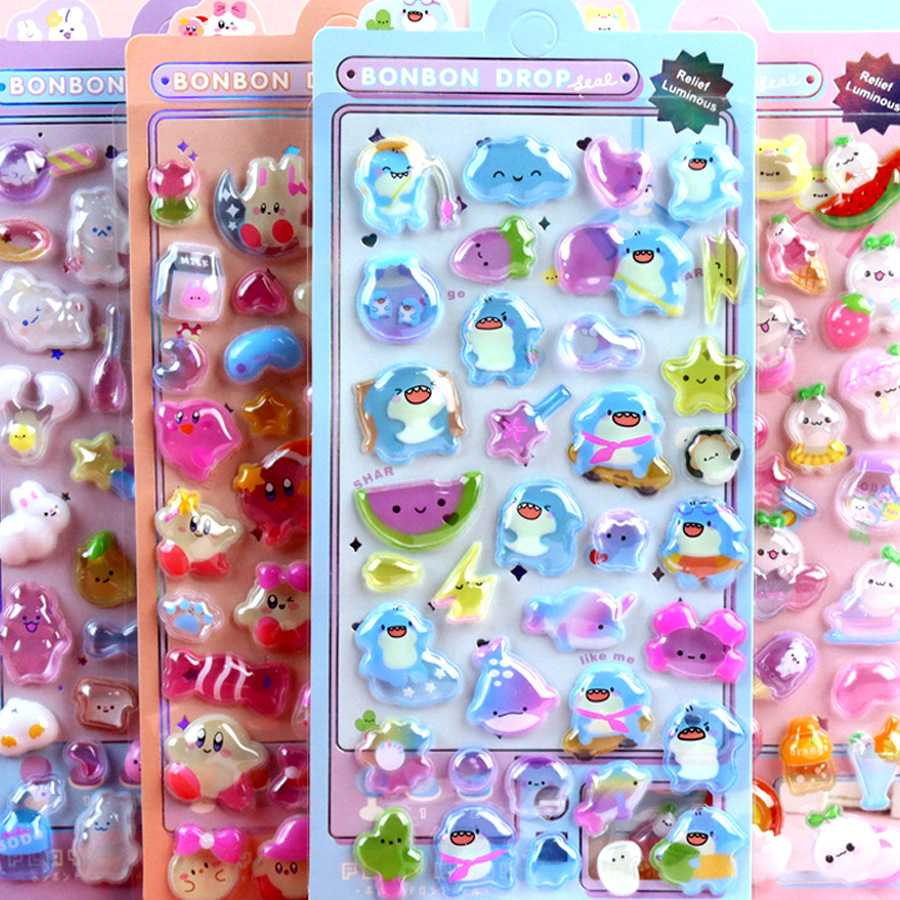 3D 만화 스테레오 릴리프 스티커 다이아몬드 보석 스티커 어린이 소녀 장식 스티커 빛나는 거품 스티커스토어 가기
