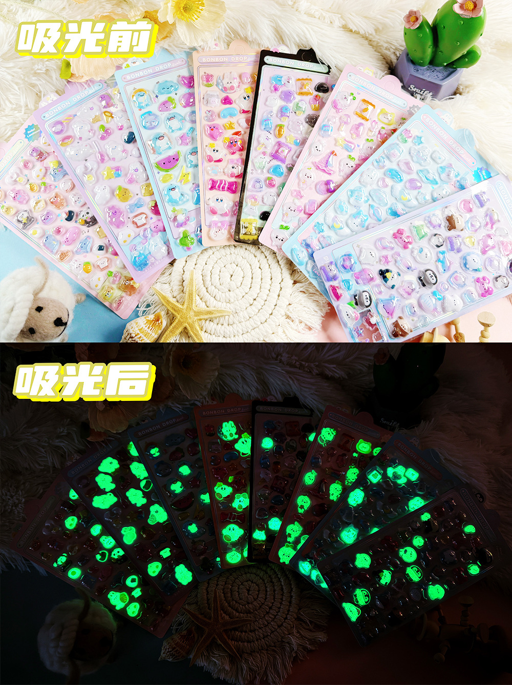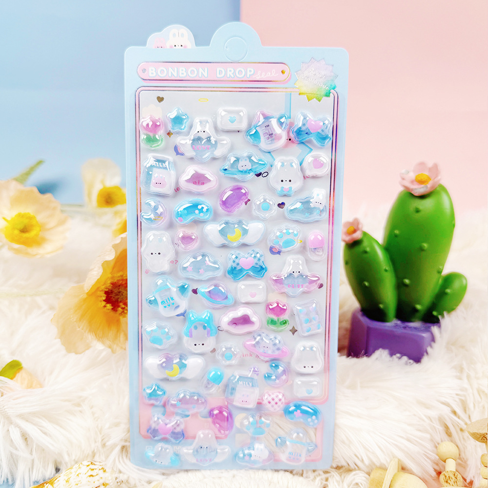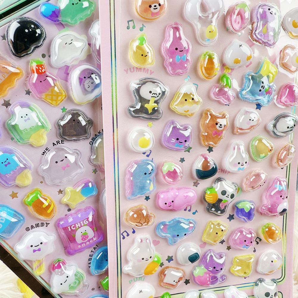 3D 만화 스테레오 릴리프 스티커 다이아몬드 보석 스티커 어린이 소녀 장식 스티커 빛나는 거품 스티커