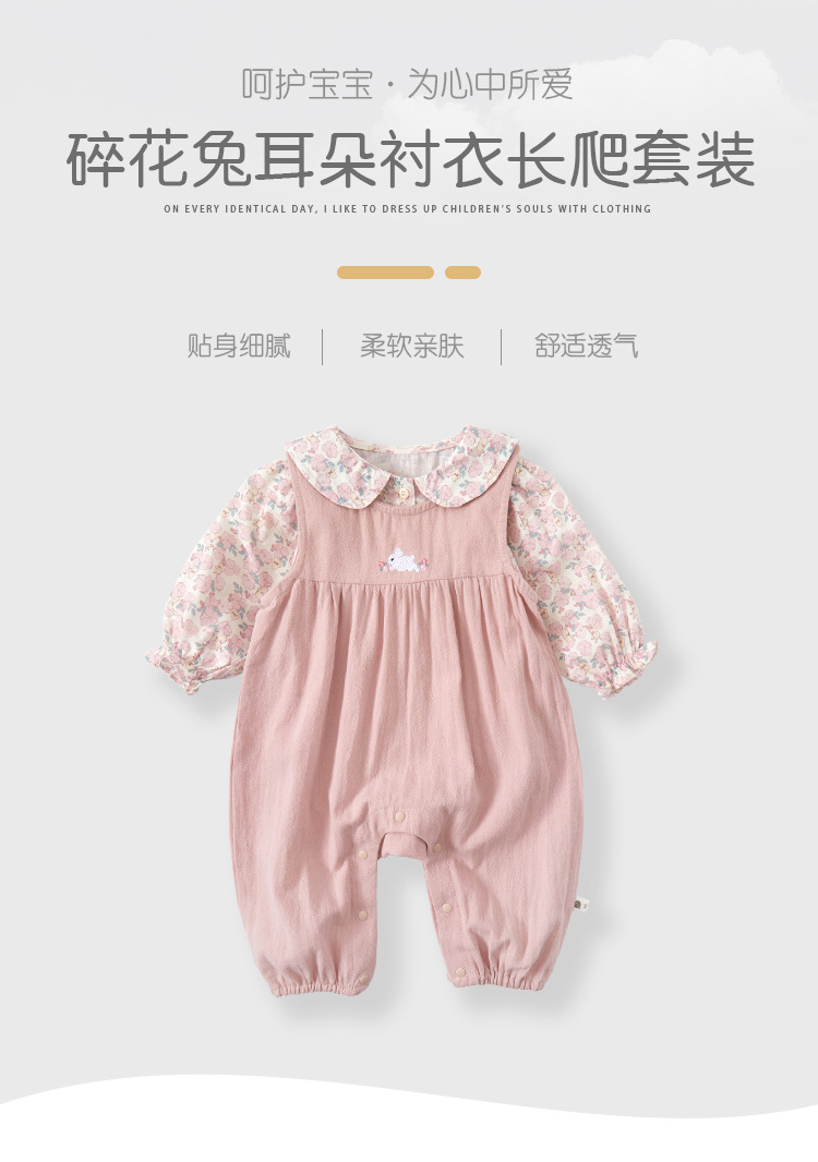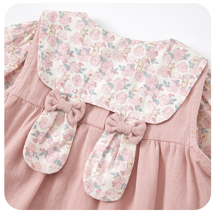 유아 토끼 가운 세트 2025 가을 새 스타일 아기 소녀 유행 토끼 귀 셔츠 점프 슈트 투피스 세트