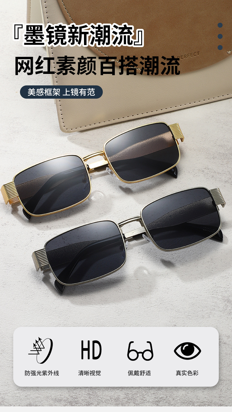 스퀘어 메탈 프레임 트렌디 한 컬러 선글라스 도매 작은 얼굴 유럽과 미국 스타일의 하이 엔드 gm 선글라스 여성의 둥근 얼굴스토어 가기