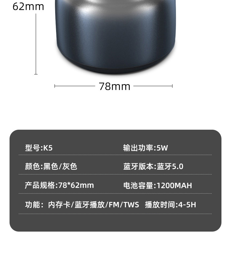 폭발 K5 미니 작은 강철 대포 무선 블루투스 오디오 홈 오피스 편리한 대용량 서브 우퍼 오디오스토어 가기