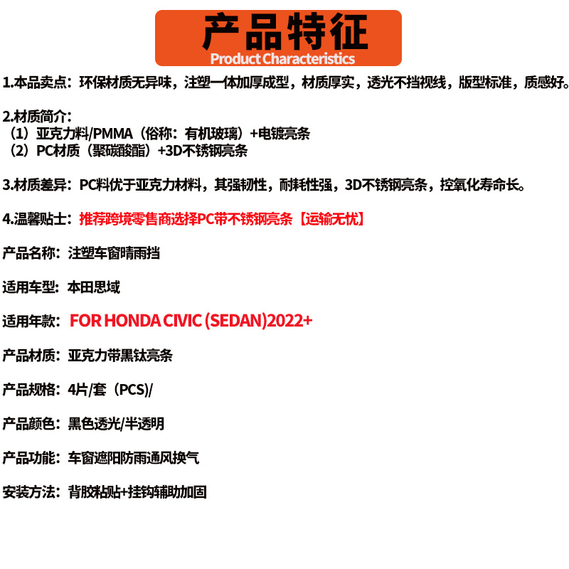 혼다 11 세대 시빅 CIVIC 2023 모델 비 방패 차 창문 비 눈썹 비 차폐