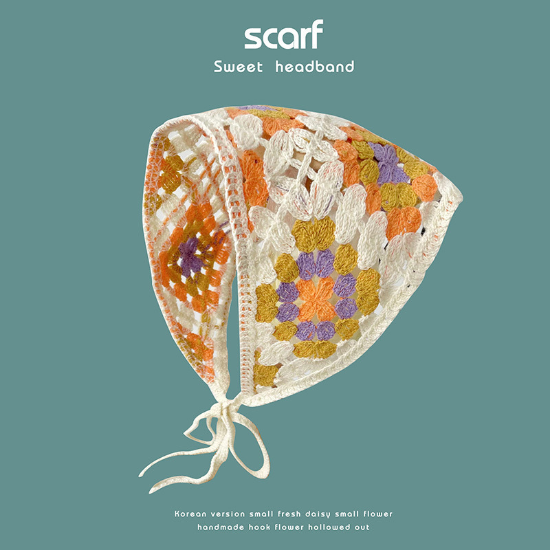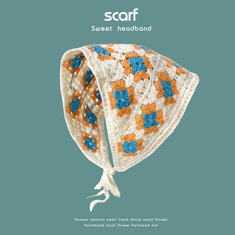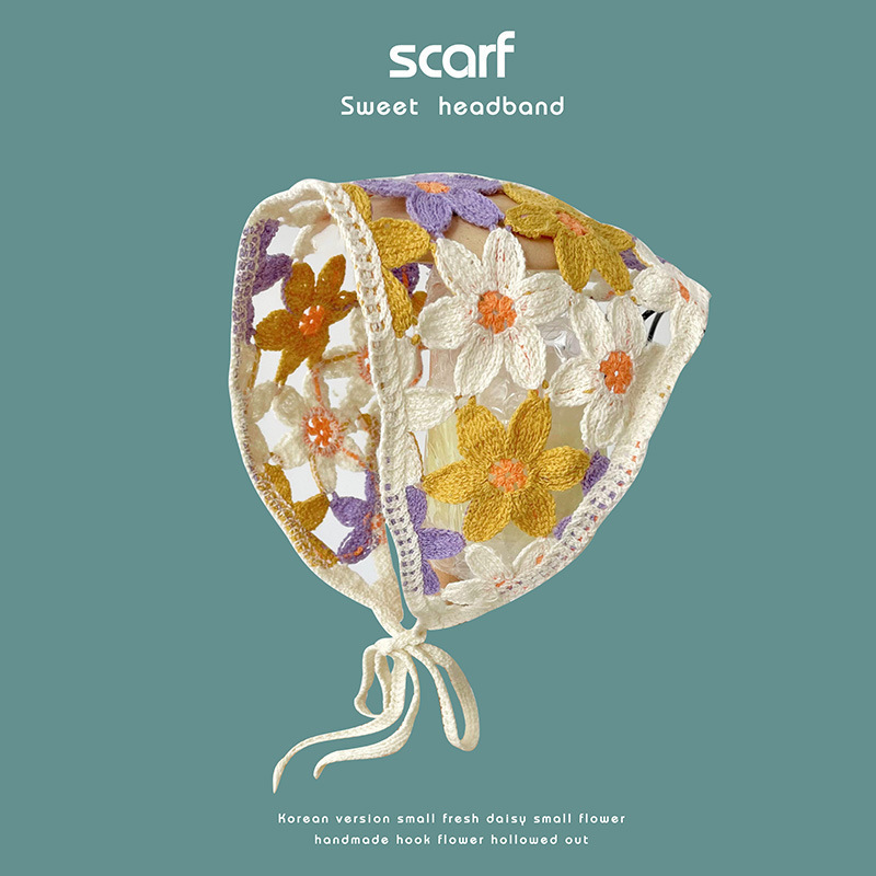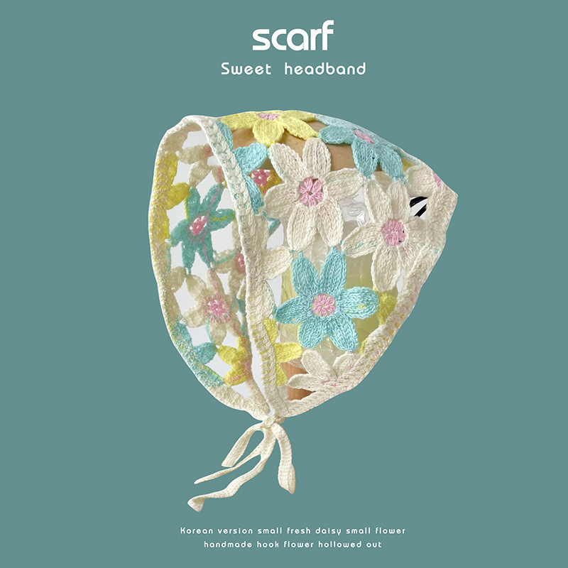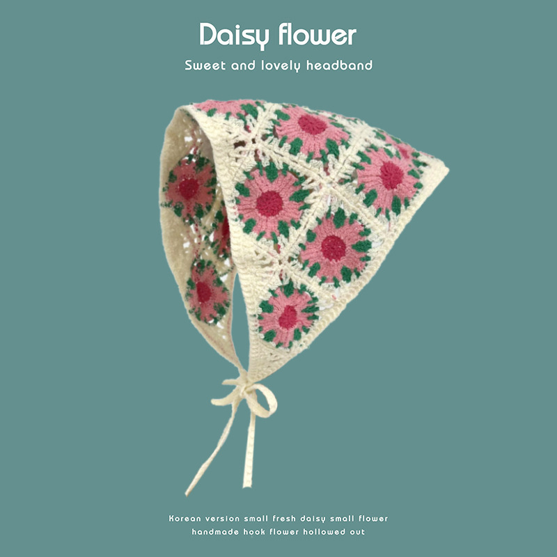 봄과 여름 한국 스타일 삼각형 스카프 수제 크로 셰 뜨개질 니트 헤어 밴드 여성 레트로 인터넷 축하 귀여운 달콤한 데이지 헤드 스카프