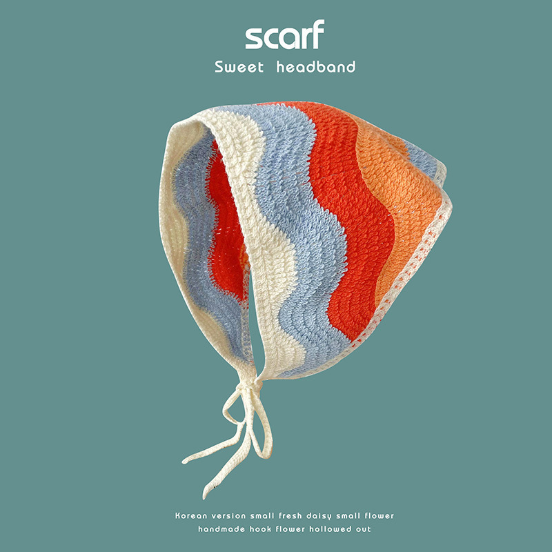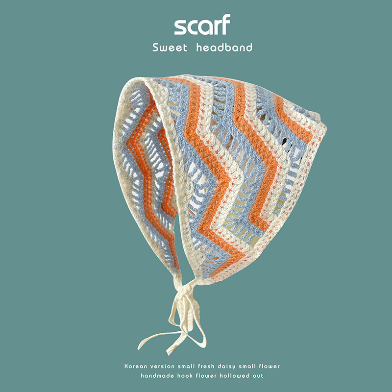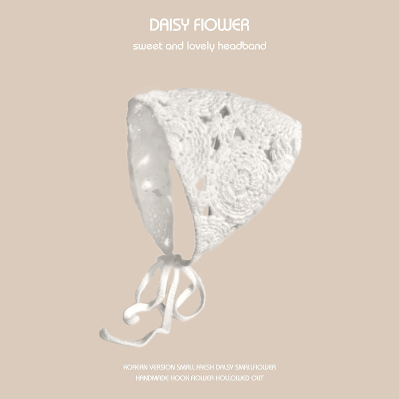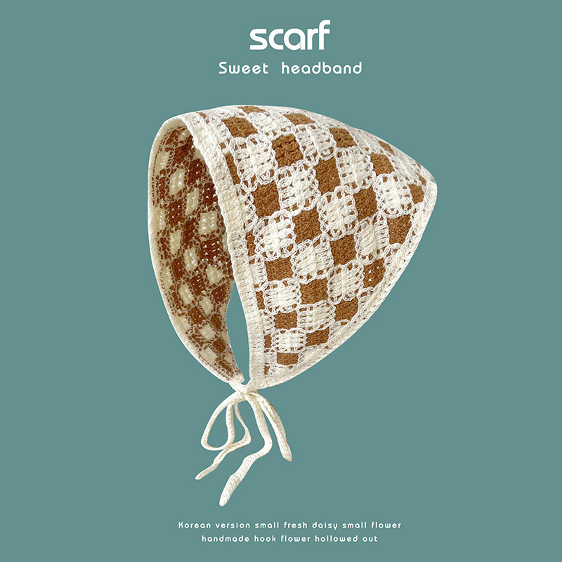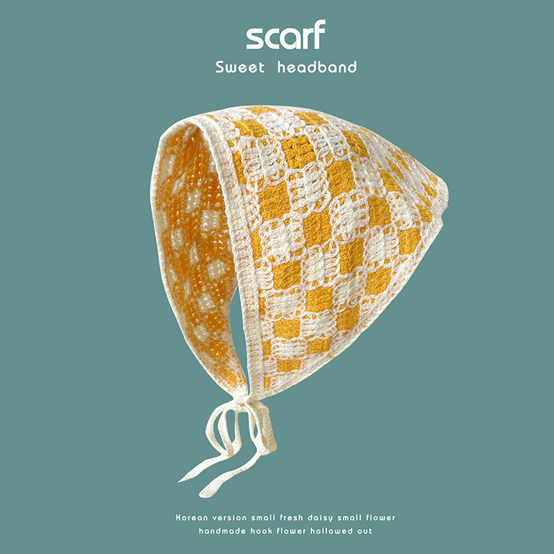 봄과 여름 한국 스타일 삼각형 스카프 수제 크로 셰 뜨개질 니트 헤어 밴드 여성 레트로 인터넷 축하 귀여운 달콤한 데이지 헤드 스카프