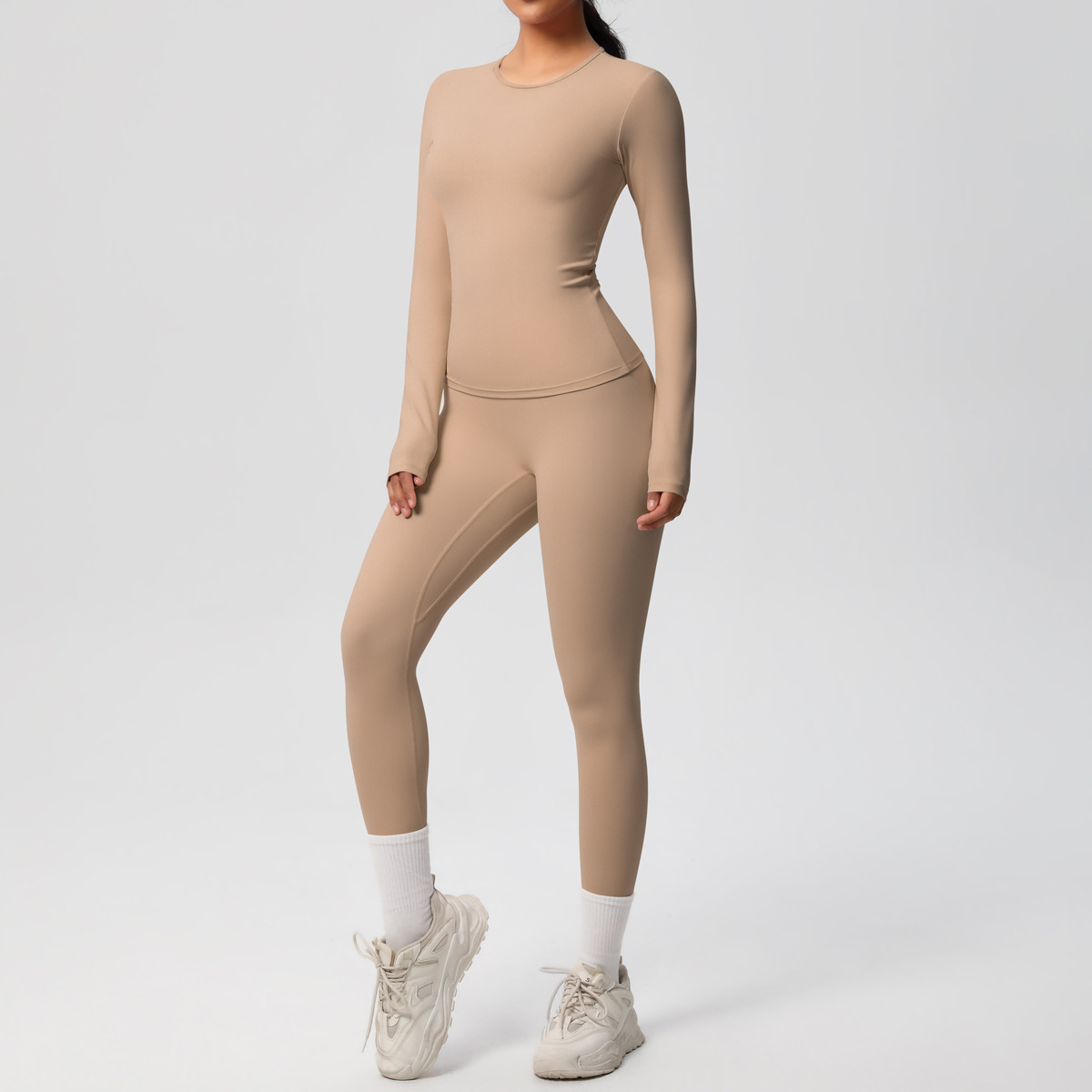 재고 국경 양면 샌딩 솔리드 컬러에 딱 맞는 훈련 긴팔 요가 의류 세트 스포츠 달리기 피트니스 투피스 세트