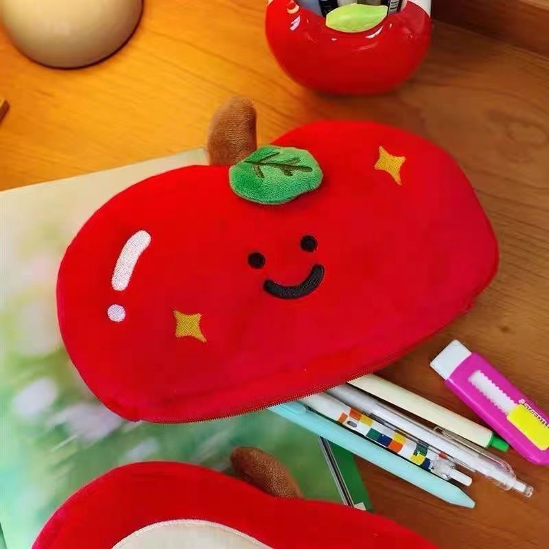 귀여운 손으로 자수 애플 연필 가방 대용량 패턴 스마일리 소녀의 심장 하이 페이스 스토리지 백 양면 자수 메이크업