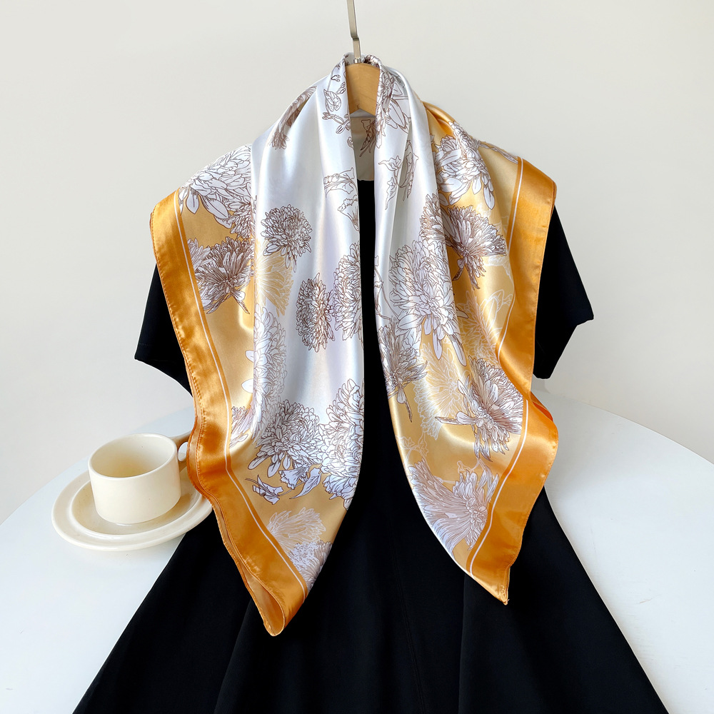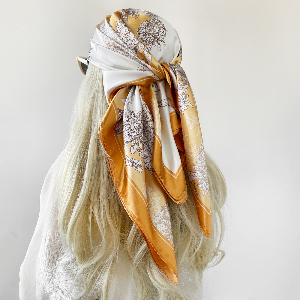 90*90cm 스카프 여성 대형 사각형 새 인쇄 복고풍 터번 국경 중동 새틴 스카프 도매