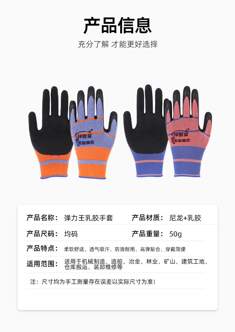 제조 업체 도매 라텍스 장갑 미끄럼 높은 탄성 통기성 내구성 노동 보호 건설 현장 담그는 거품 장갑스토어 가기