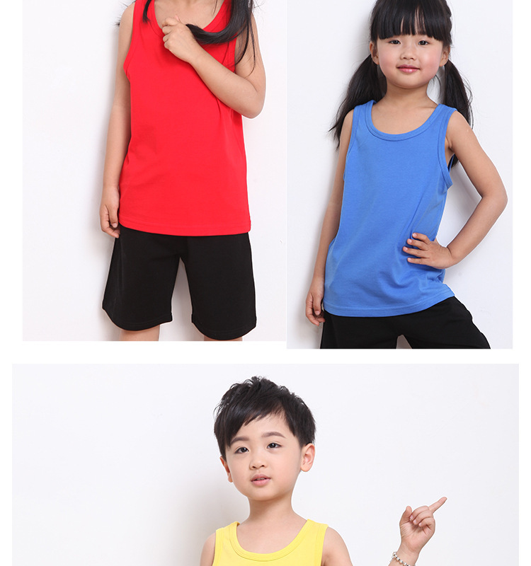2025 여름 어린이 조끼 느슨한 캐주얼 아동베이스 셔츠 솔리드 컬러 부모-자식 활동 인쇄 스포츠 탑