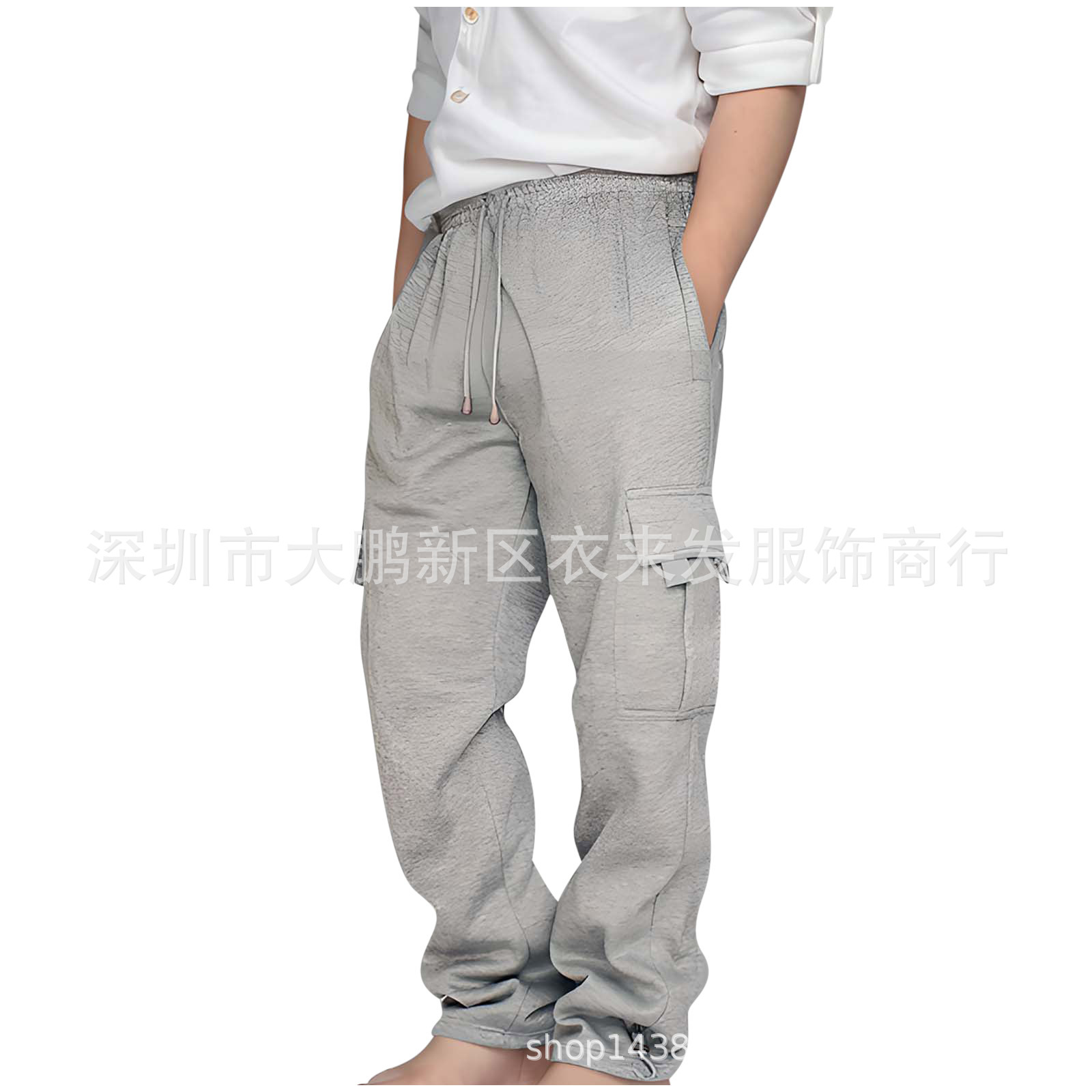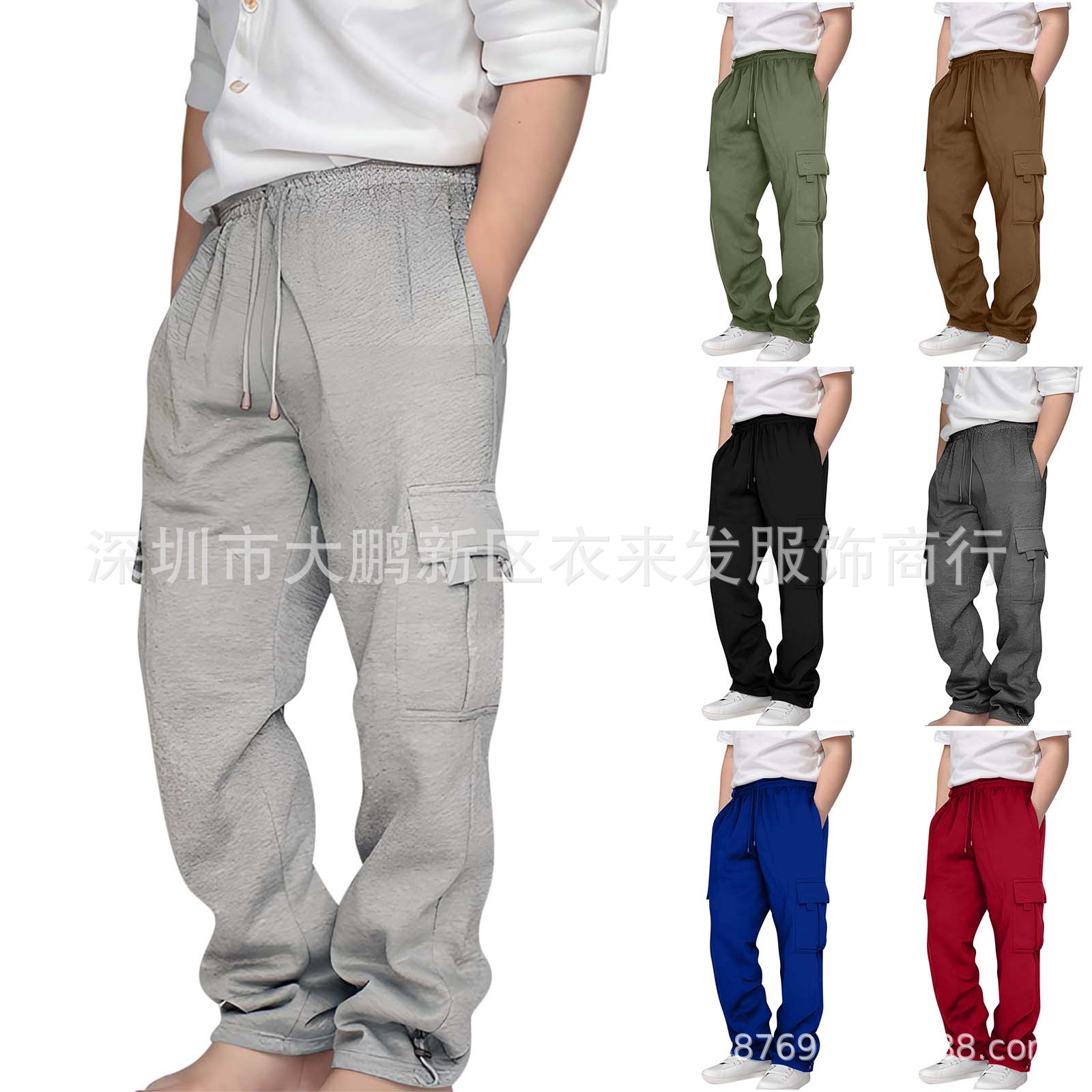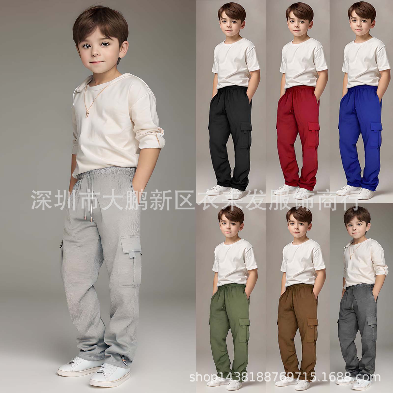 2024 아마존 중 큰 어린이 캐주얼 스포츠 핏 바지 유럽과 미국 소년 멀티 포켓 드로우 스트링 바지