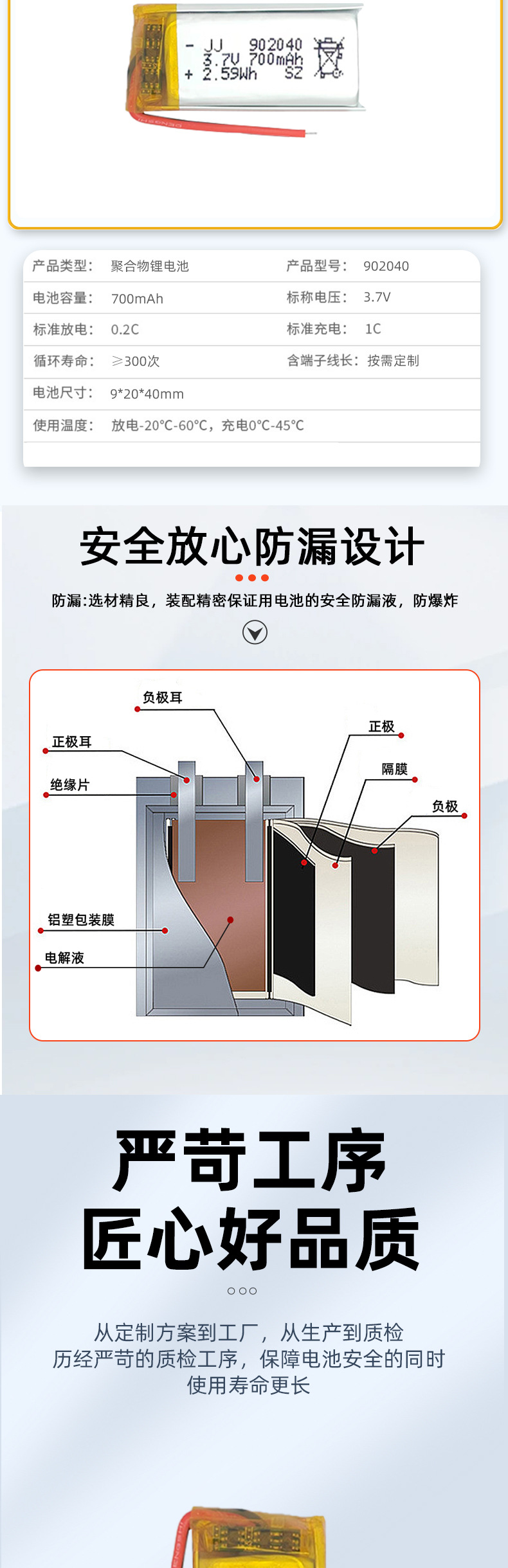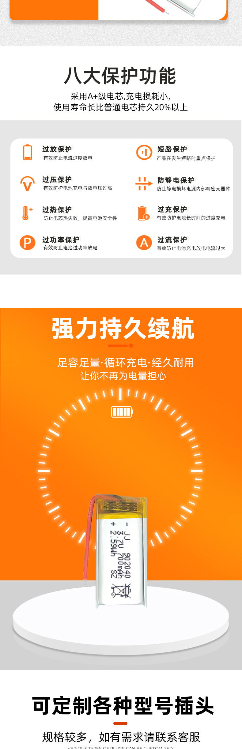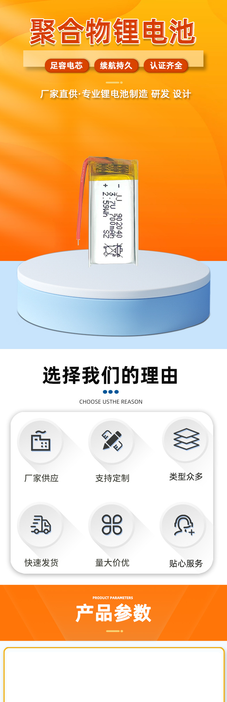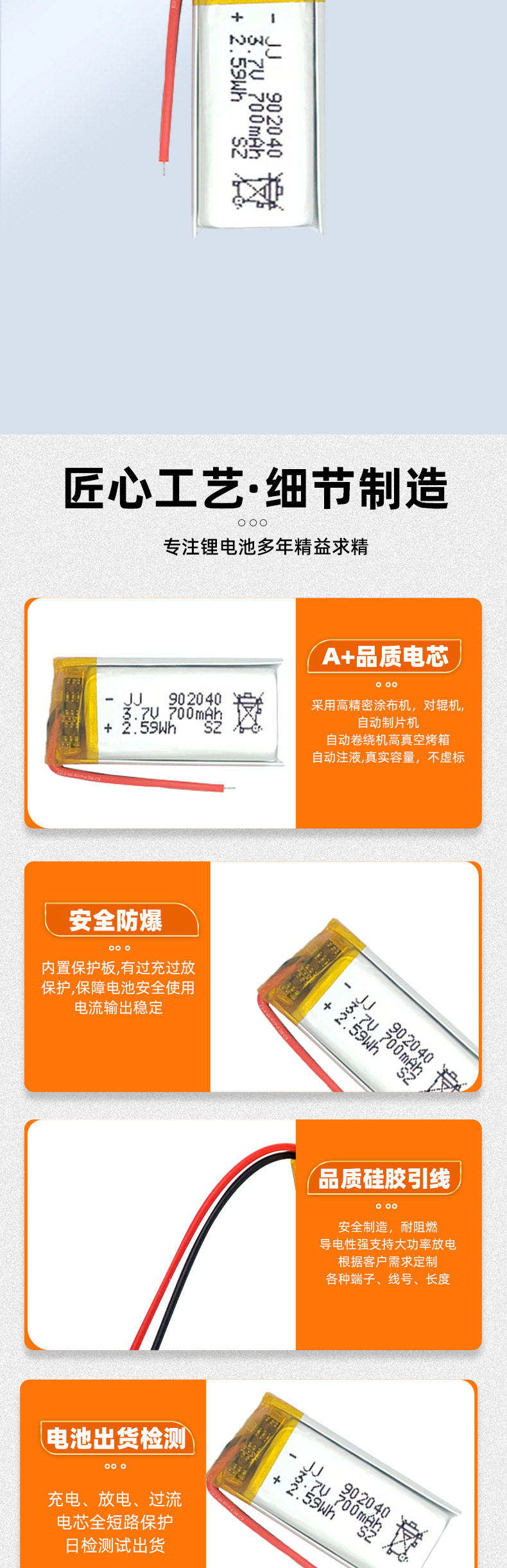 902040 폴리머 리튬 배터리 700mAhLED 램프 게임 콘솔 3.7V 블루투스 오디오 충전 소프트 팩 배터리스토어 가기
