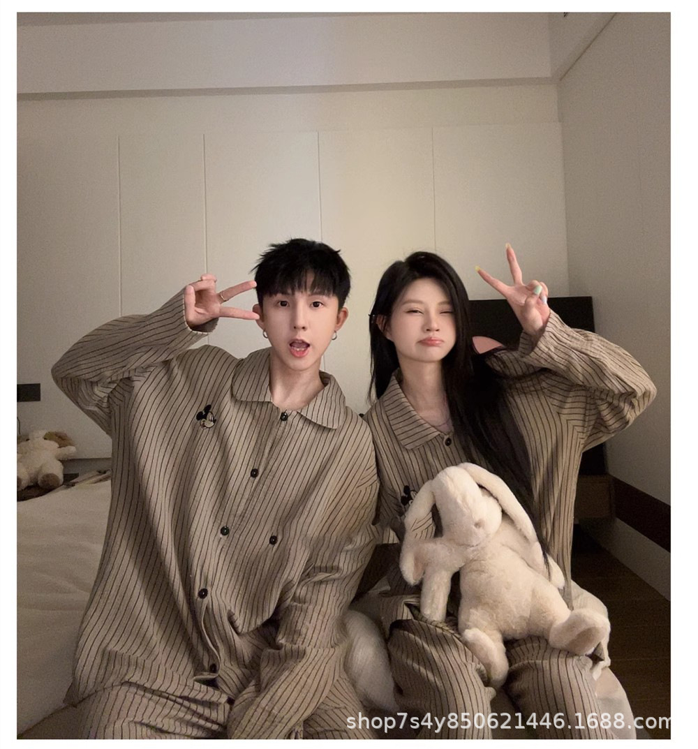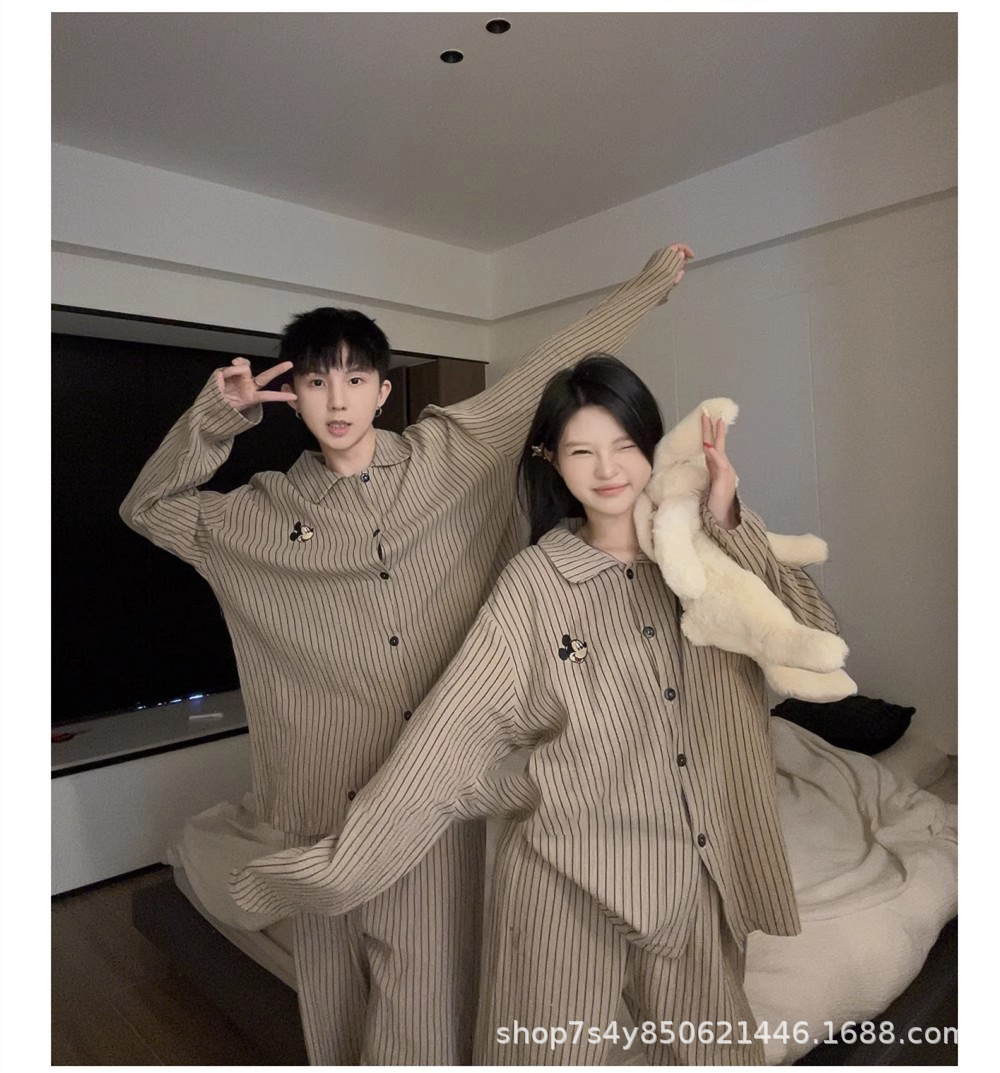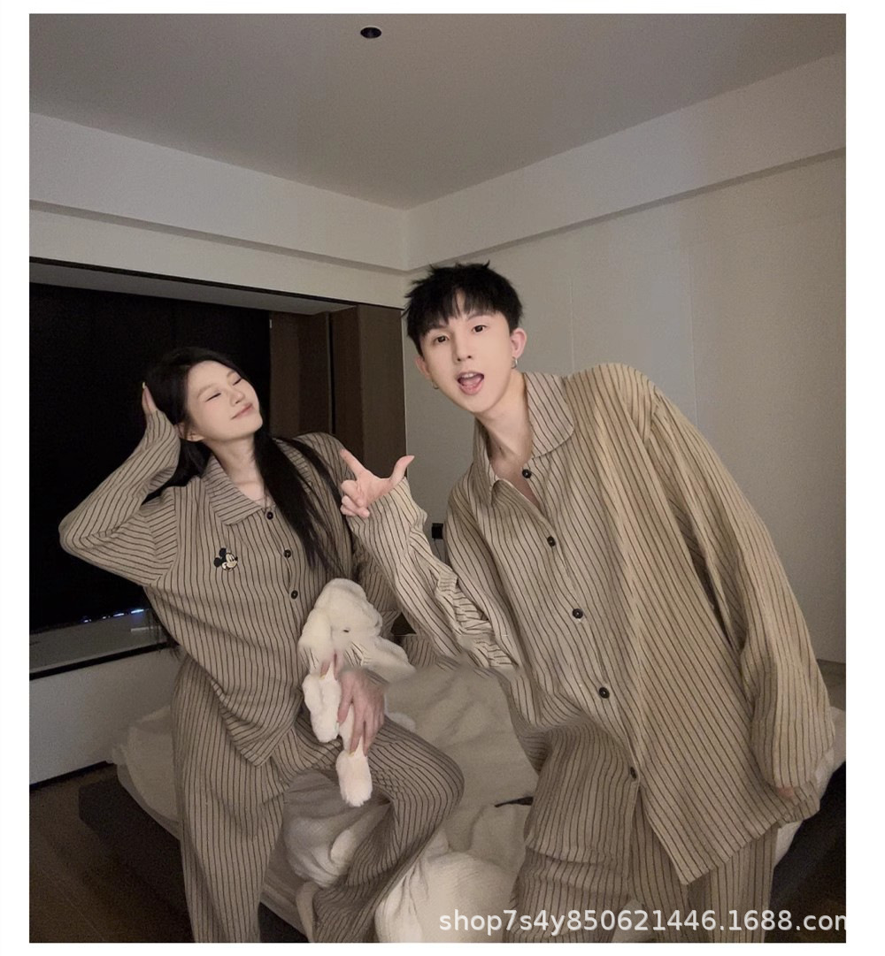 커플 잠옷 여성의 봄과 가을 플러스 사이즈 구름 코튼 거즈 국경 홈 옷 남자 줄무늬 긴팔 세트 봄스토어 가기