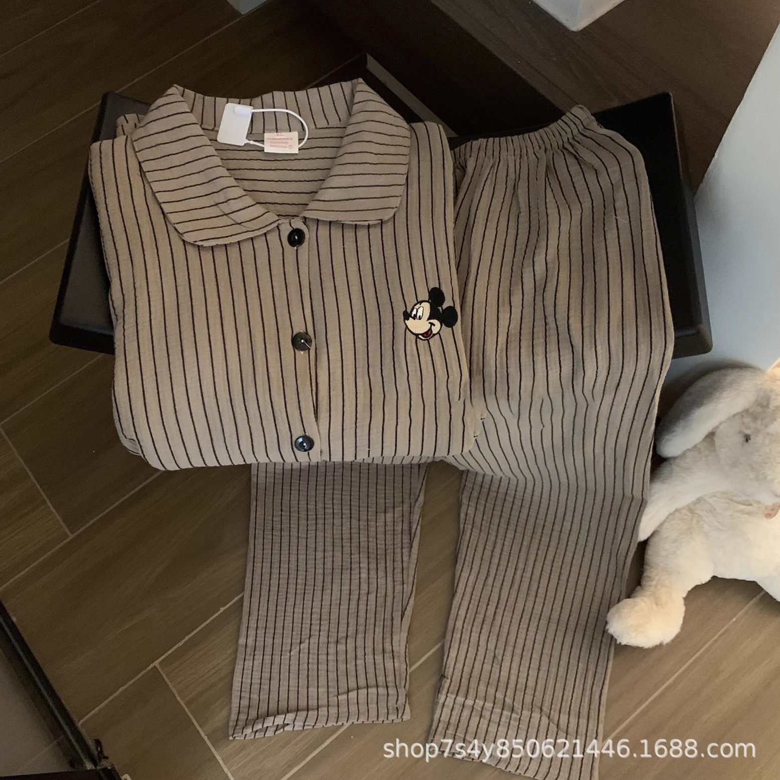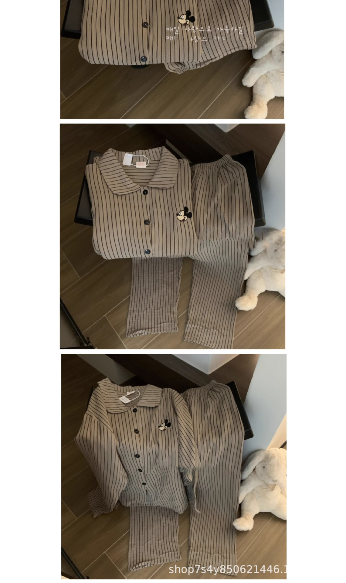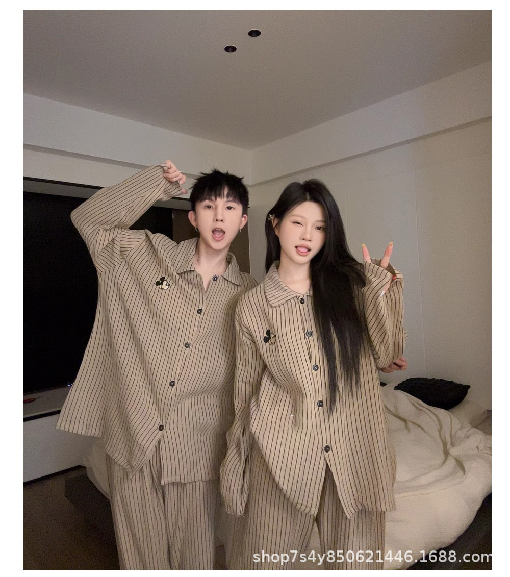 커플 잠옷 여성의 봄과 가을 플러스 사이즈 구름 코튼 거즈 국경 홈 옷 남자 줄무늬 긴팔 세트 봄스토어 가기