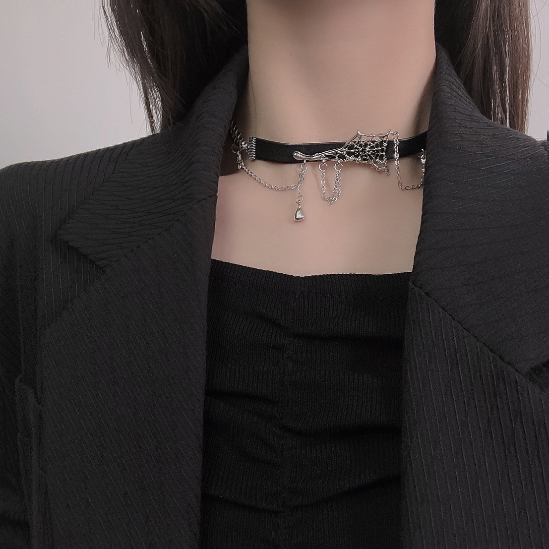 디아블로 펑크 스파이더 웹 체인 스파이스 걸스 하이 스트리트 틈새 디자인 하이 센스 목걸이 달콤한 쿨 칼라 목걸이