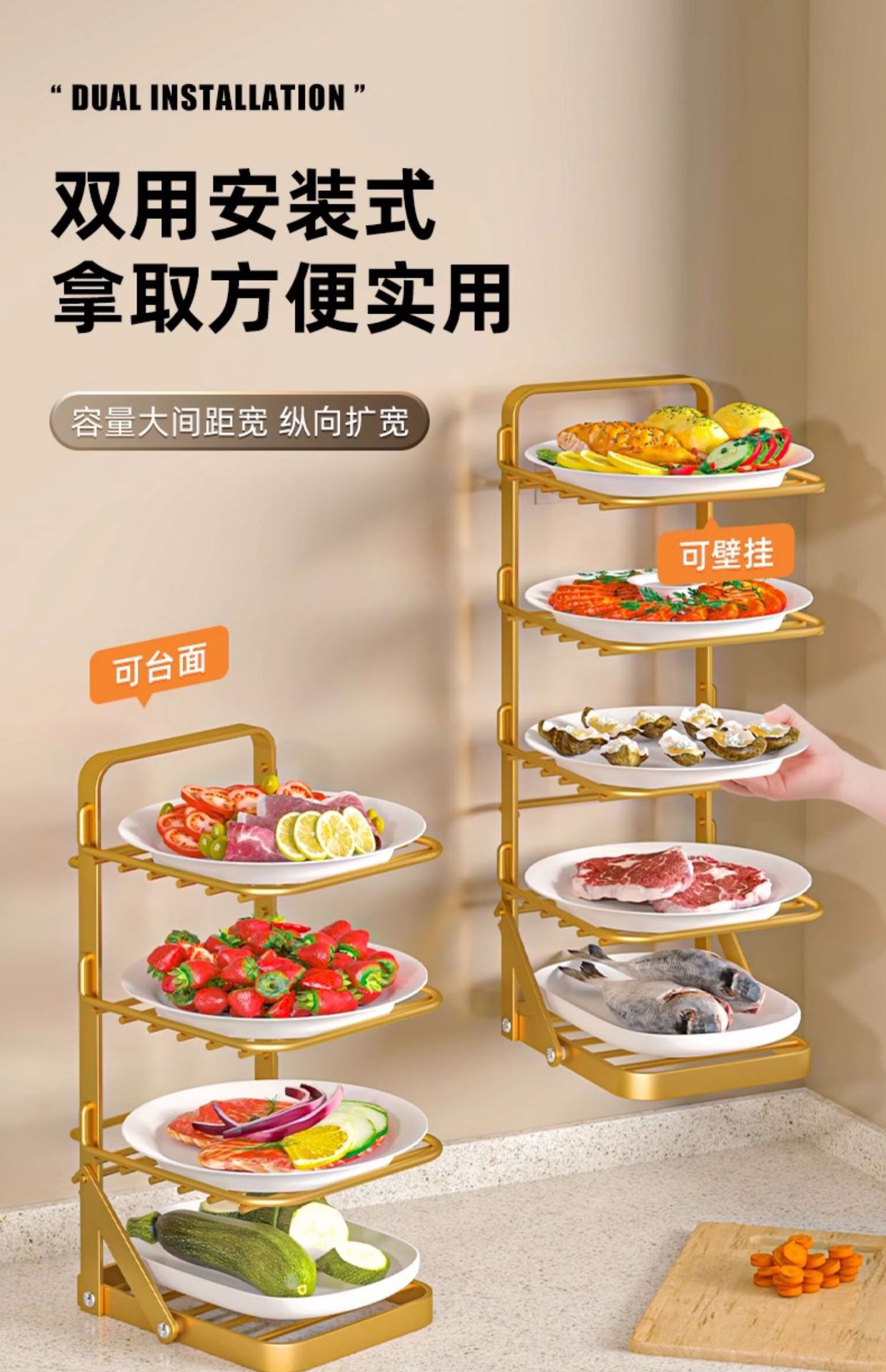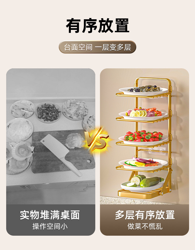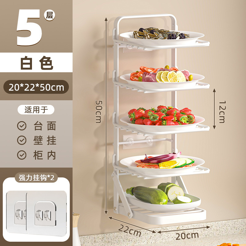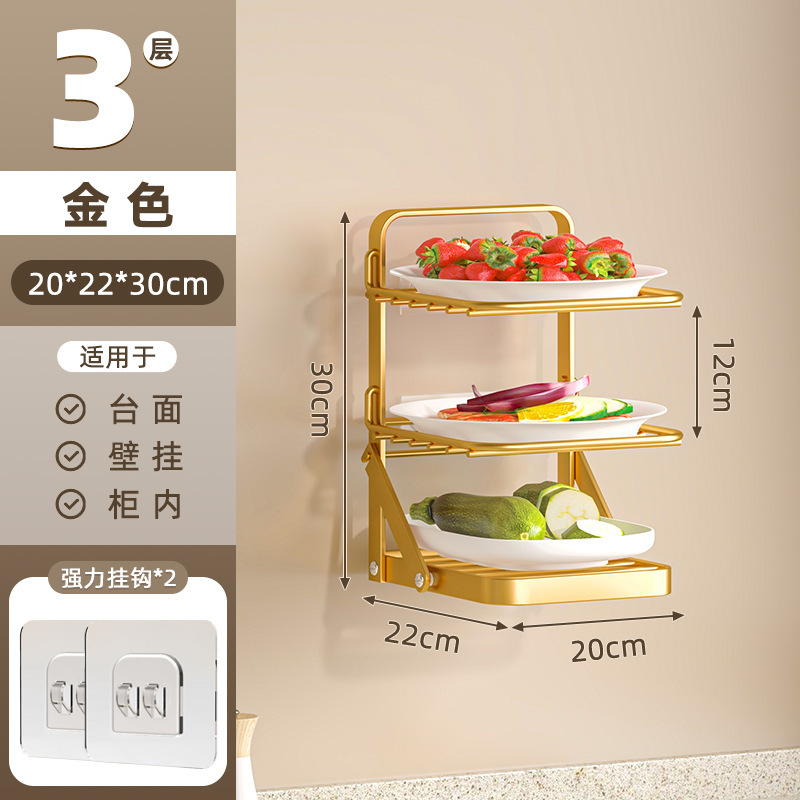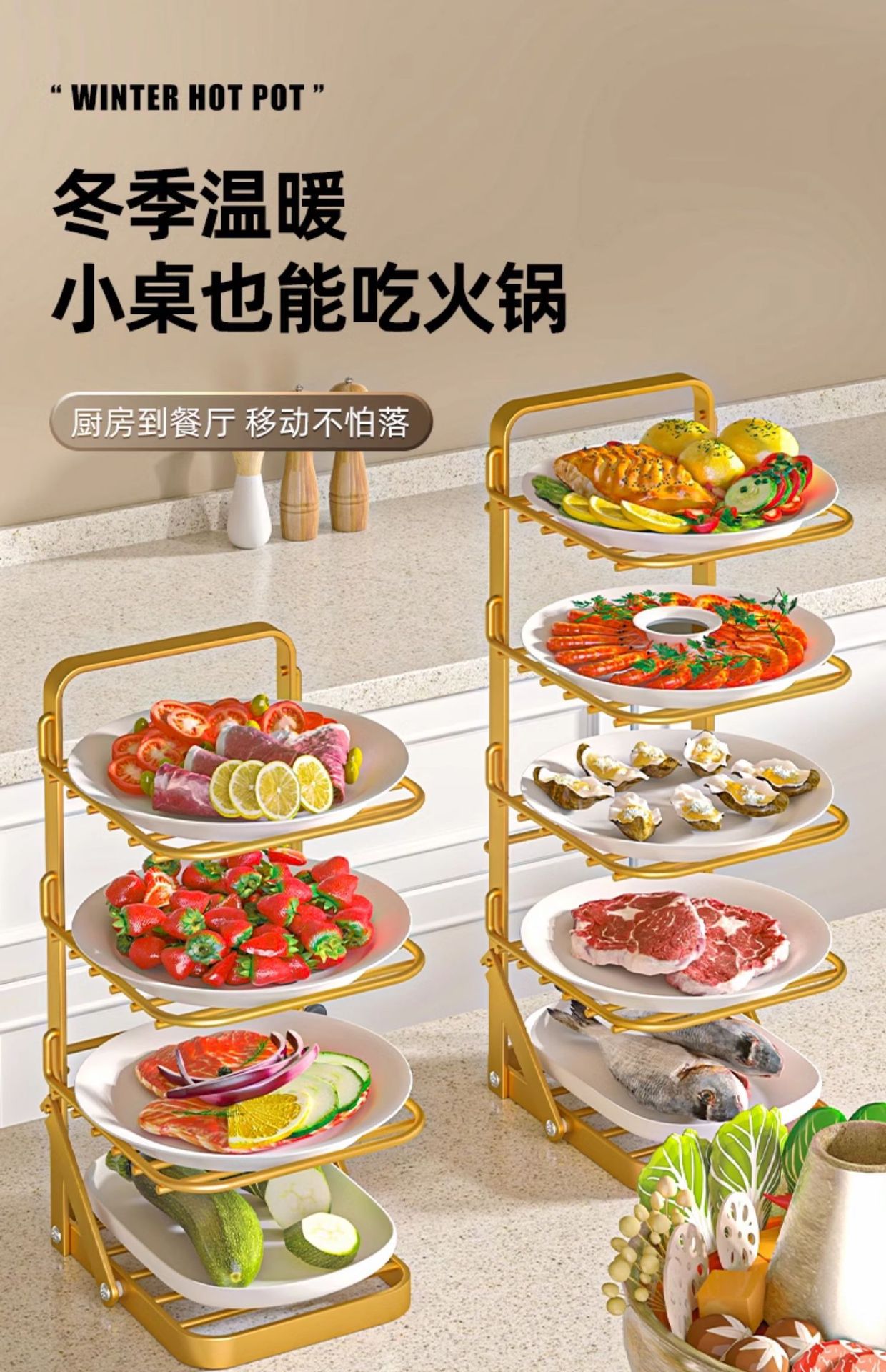 접이식 식품 보관 랙 주방 벽걸이 형 다층 식품 플레이트 가정용 식품 준비 다기능 핫 팟 볶음 저장 랙