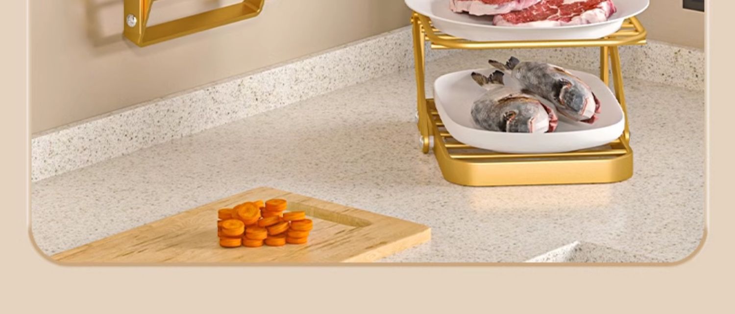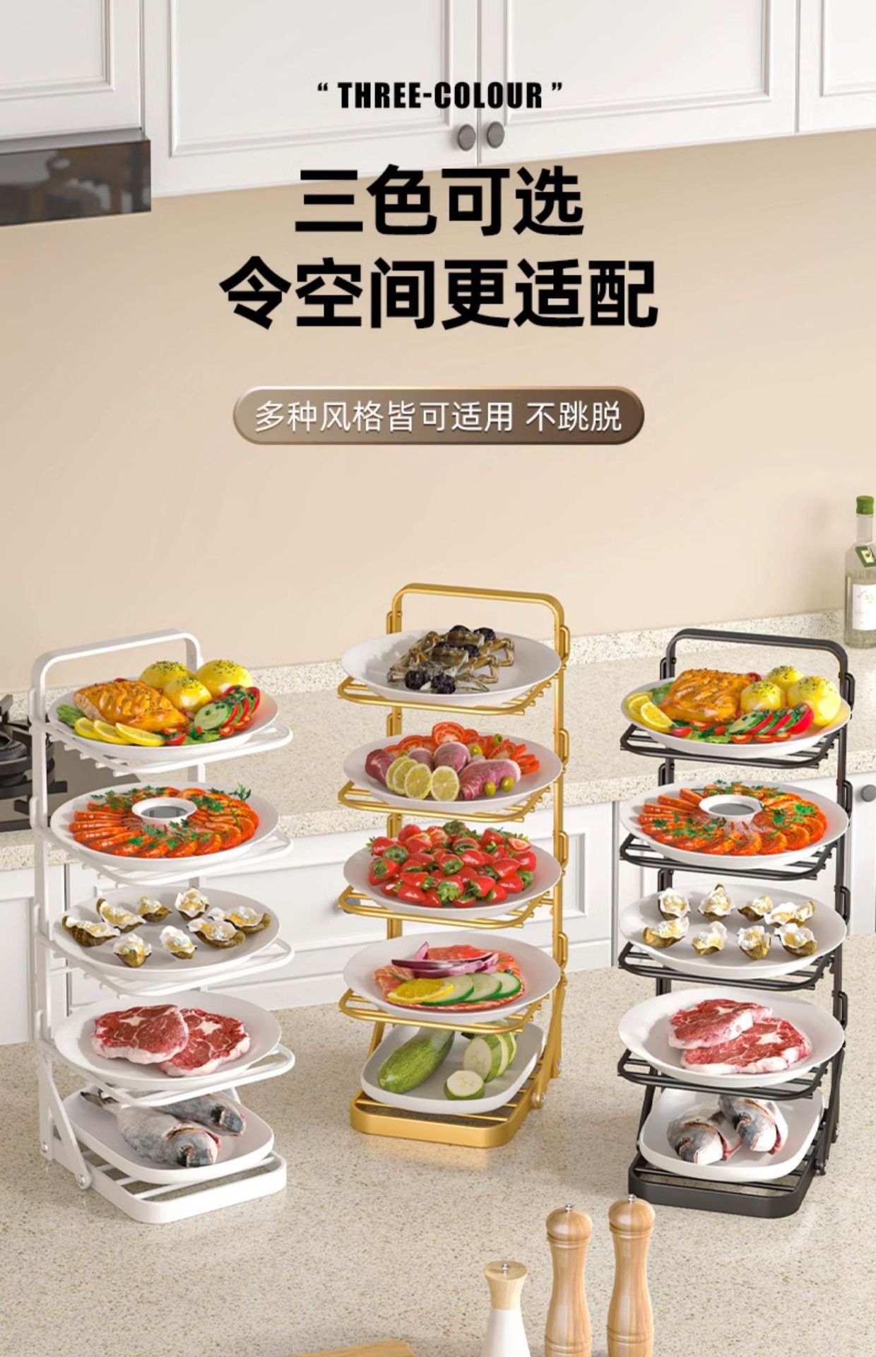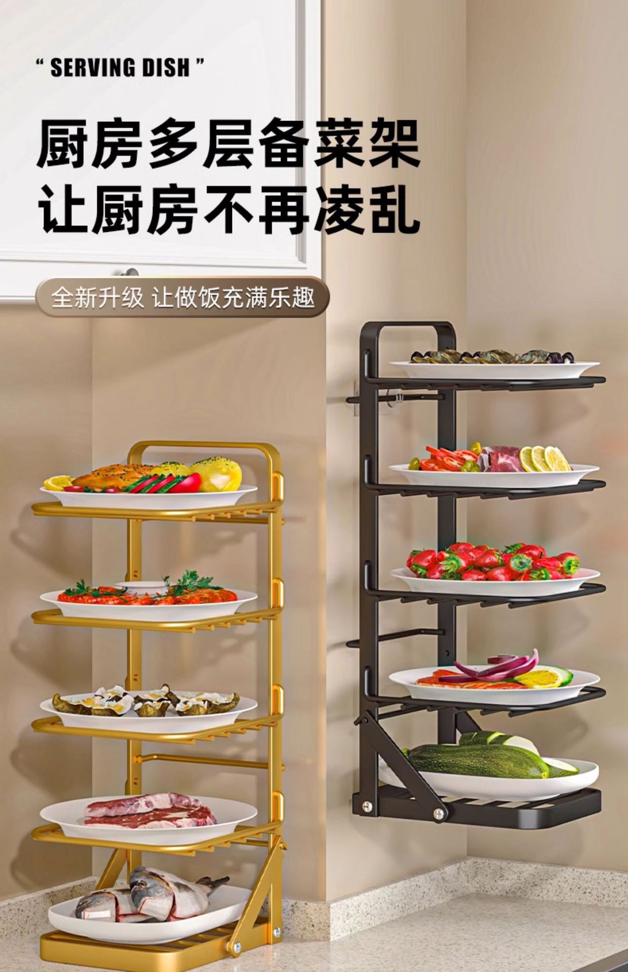 접이식 식품 보관 랙 주방 벽걸이 형 다층 식품 플레이트 가정용 식품 준비 다기능 핫 팟 볶음 저장 랙