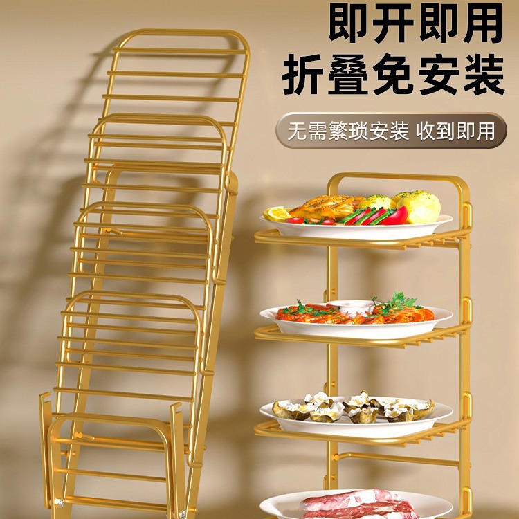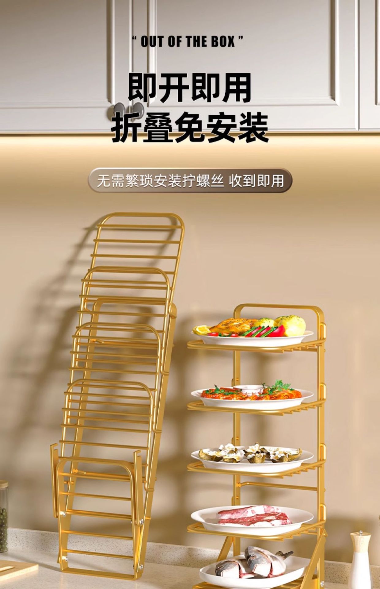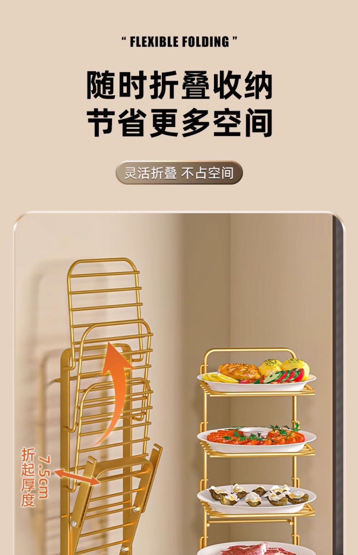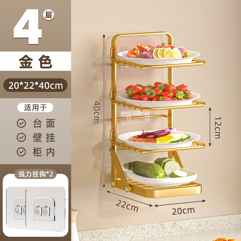 접이식 식품 보관 랙 주방 벽걸이 형 다층 식품 플레이트 가정용 식품 준비 다기능 핫 팟 볶음 저장 랙스토어 가기