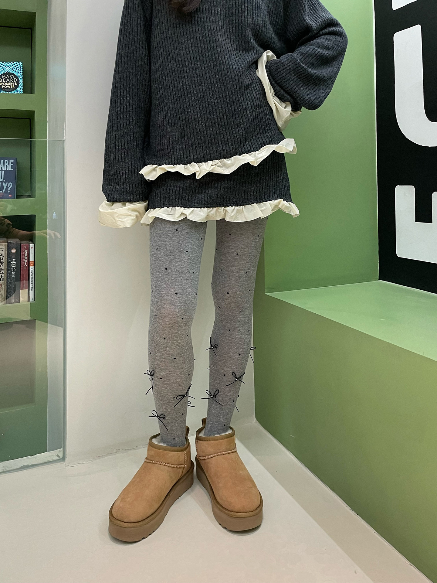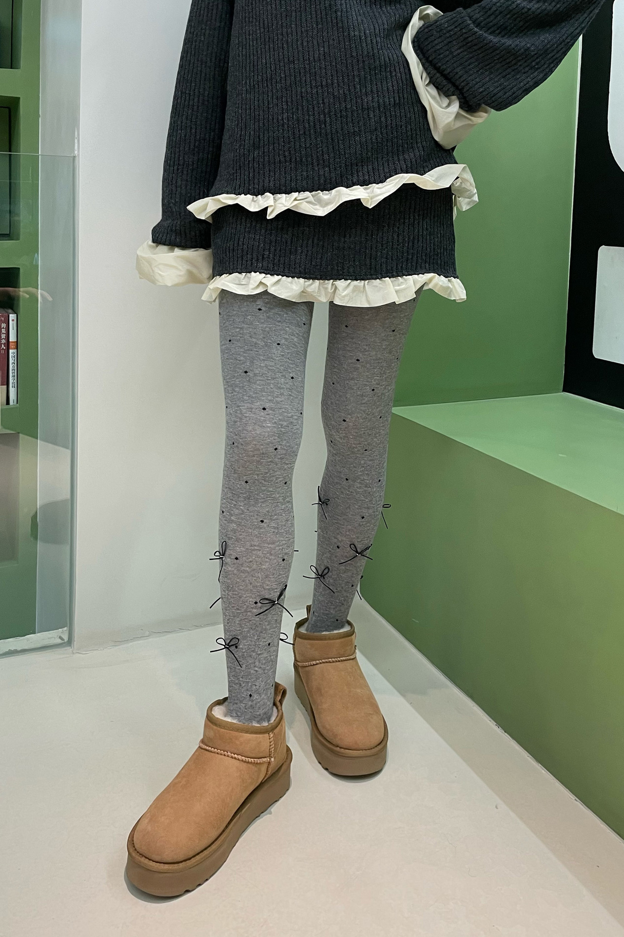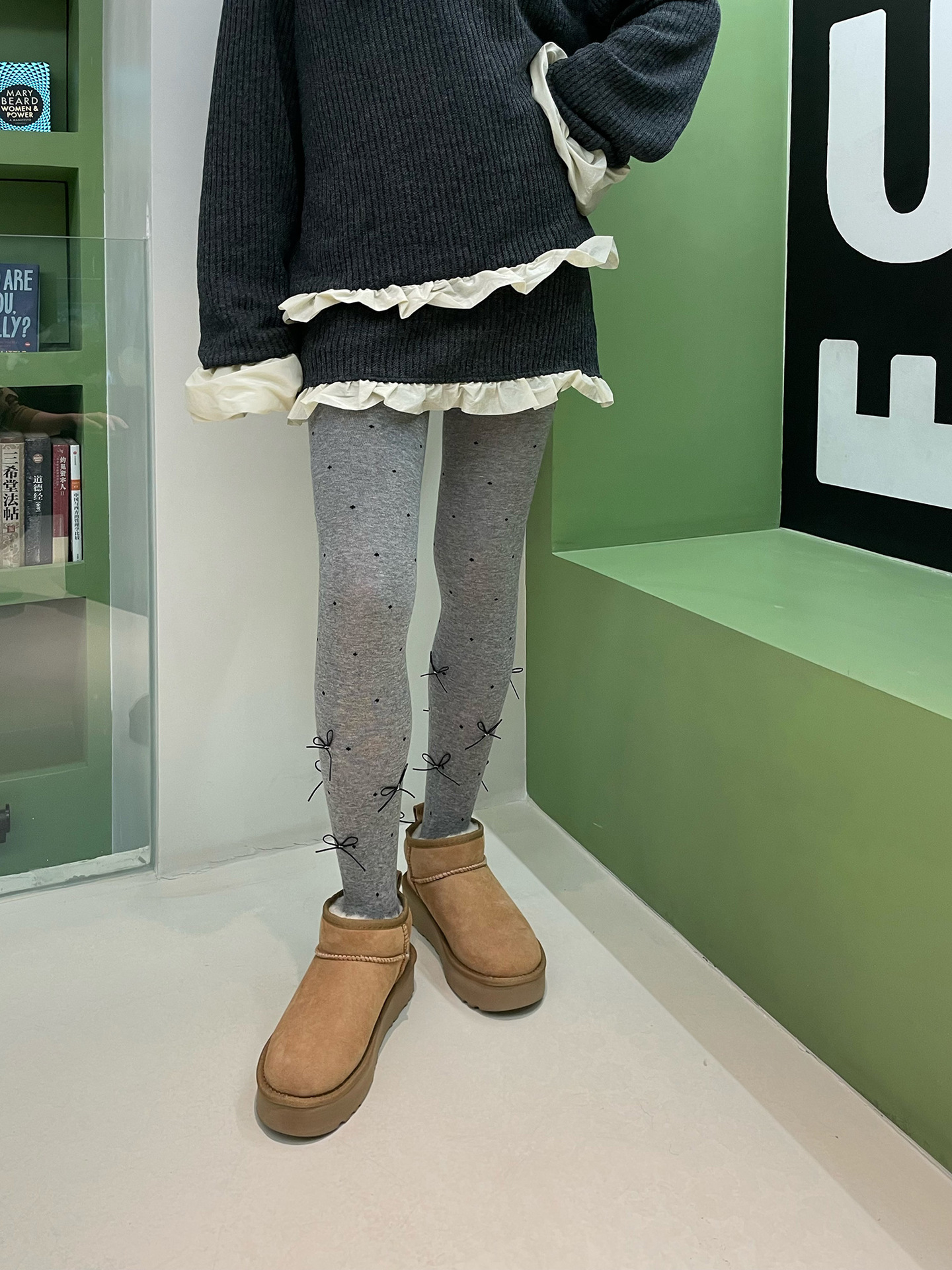 가을과 겨울 두꺼운 기모 한국 스타일 폴카 도트 여러 가죽 활 팬티 스타킹 폴카 도트 자카드 고급 회색베이스 양말스토어 가기
