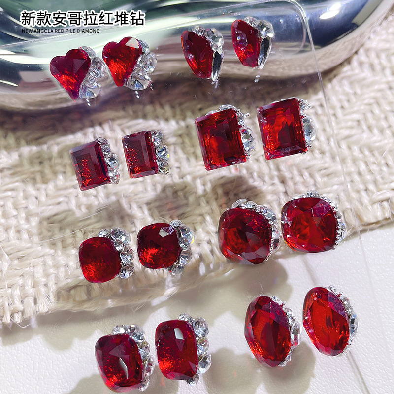 새로운 Ankora 레드 투명 컬러 레드 네일 아트 더미 다이아몬드 쥬얼리 러브 도끼 모양의 3 차원 네일 더미 다이아몬드 볼스토어 가기