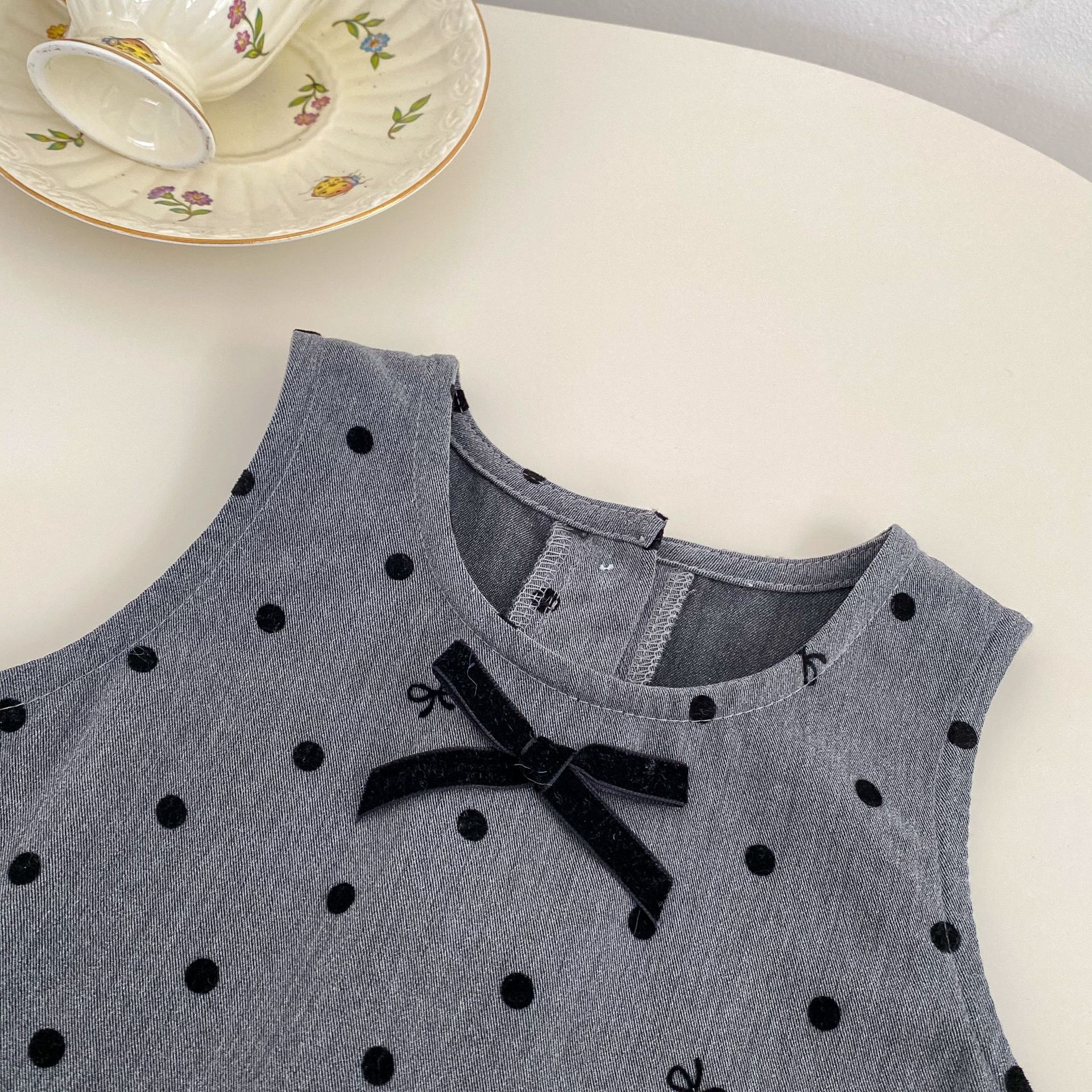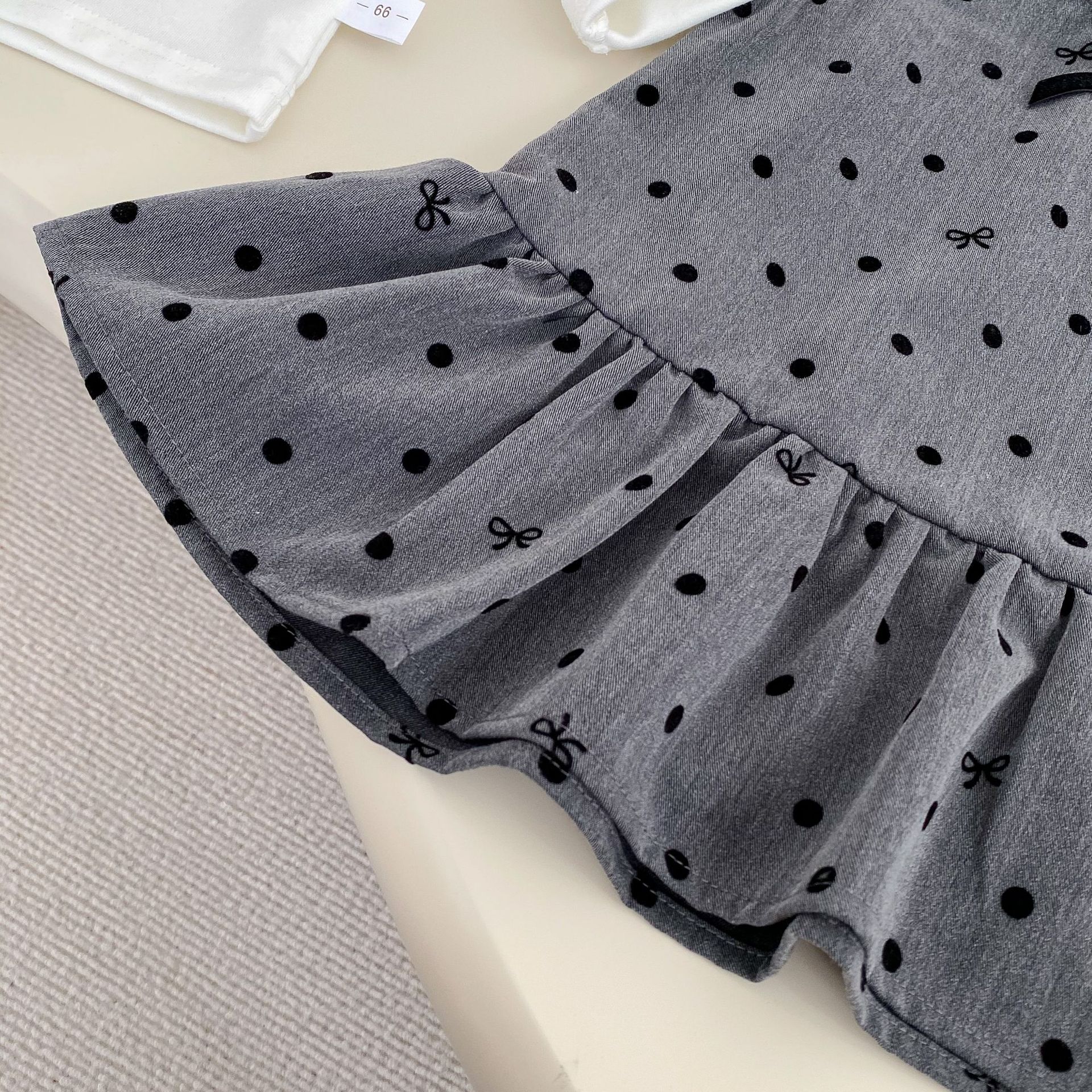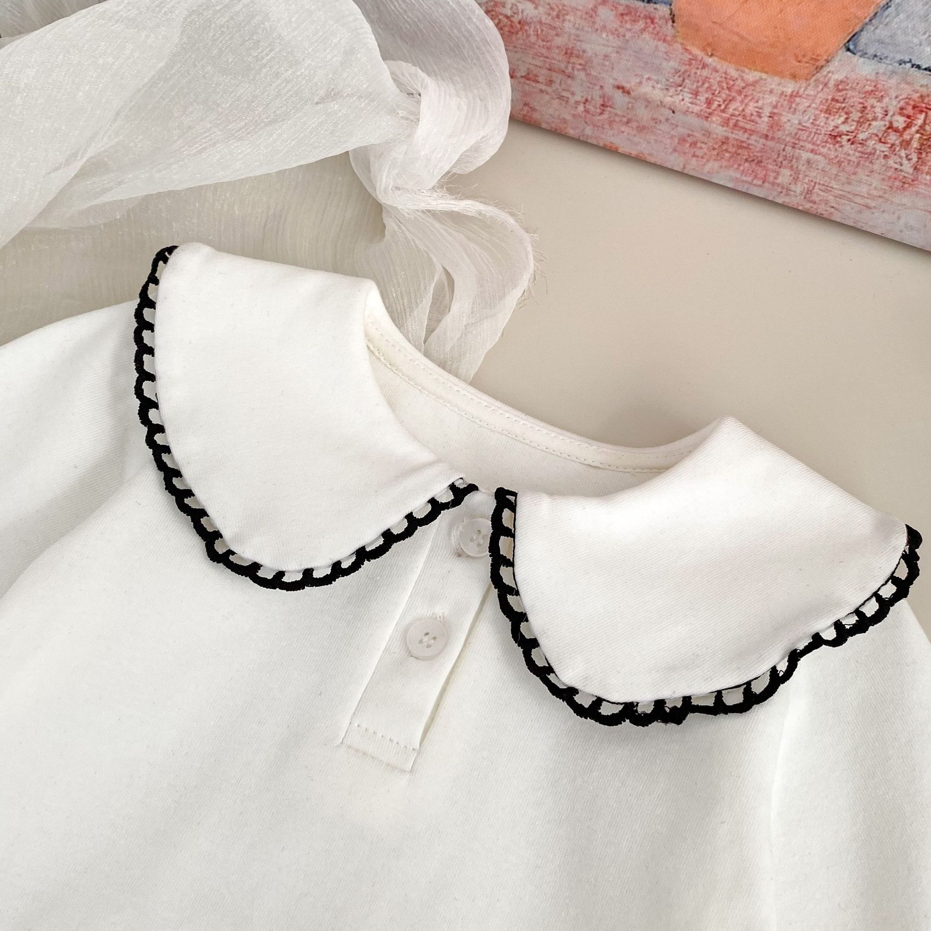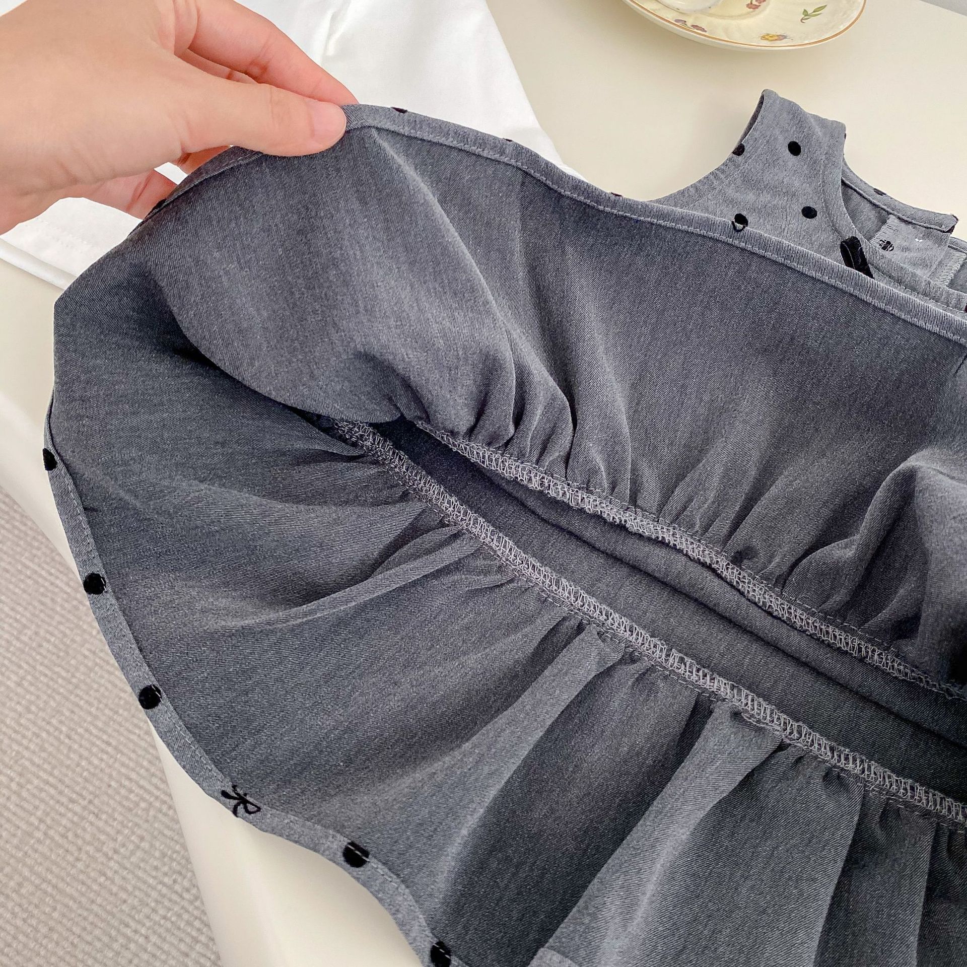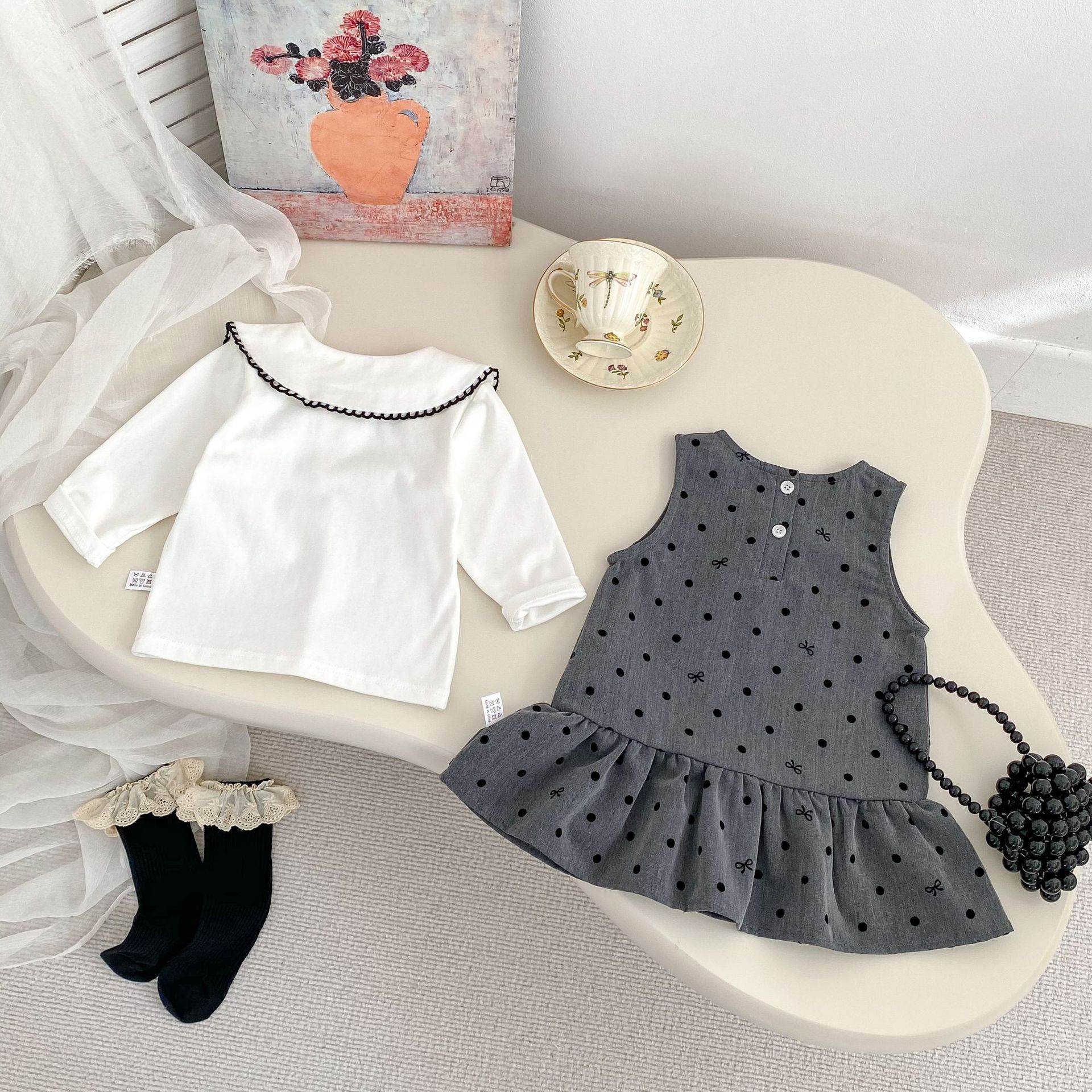 2025 봄 새로운 달콤한 소녀 아기 웨이브 나비 조끼 스커트 인형 칼라 기본 셔츠 투피스 세트