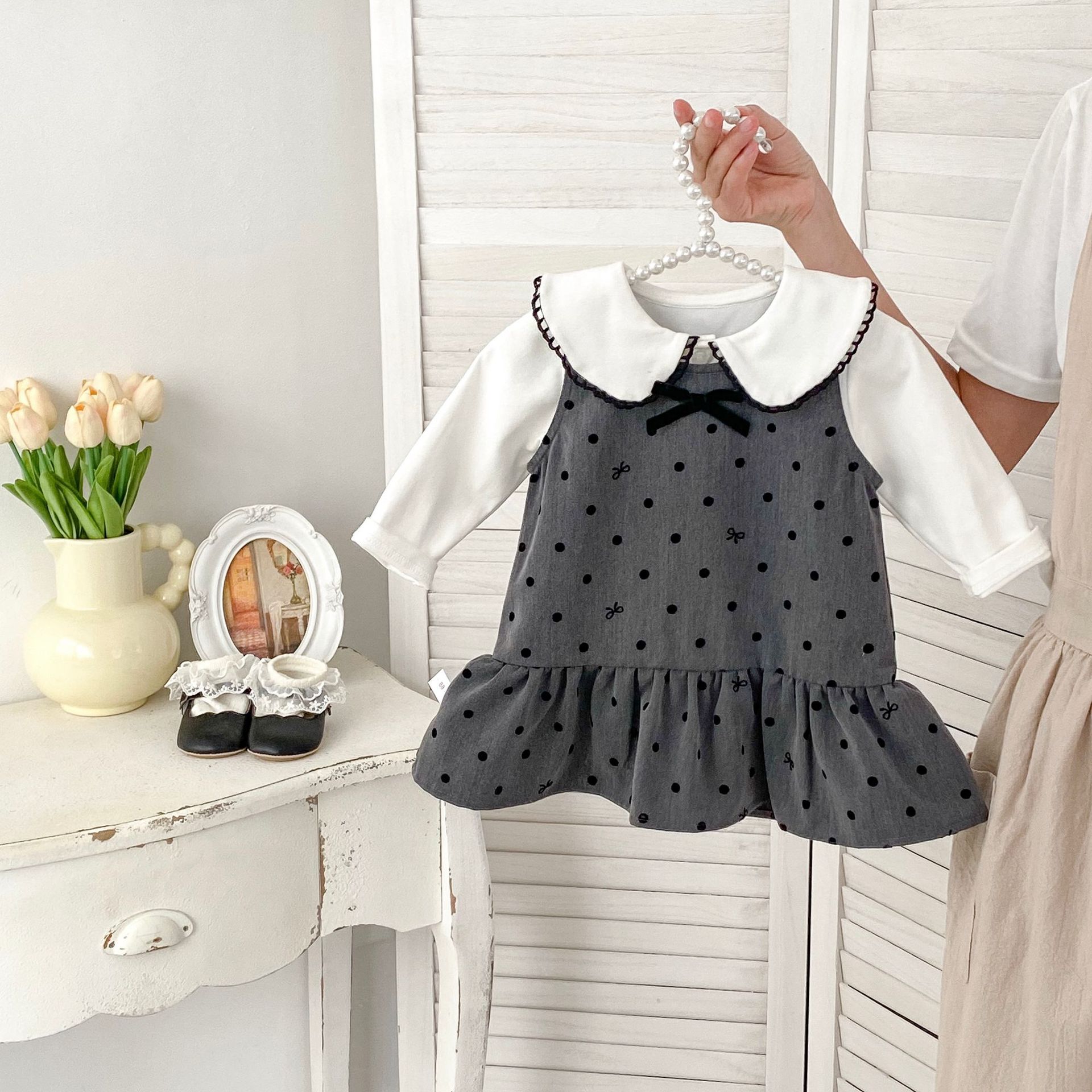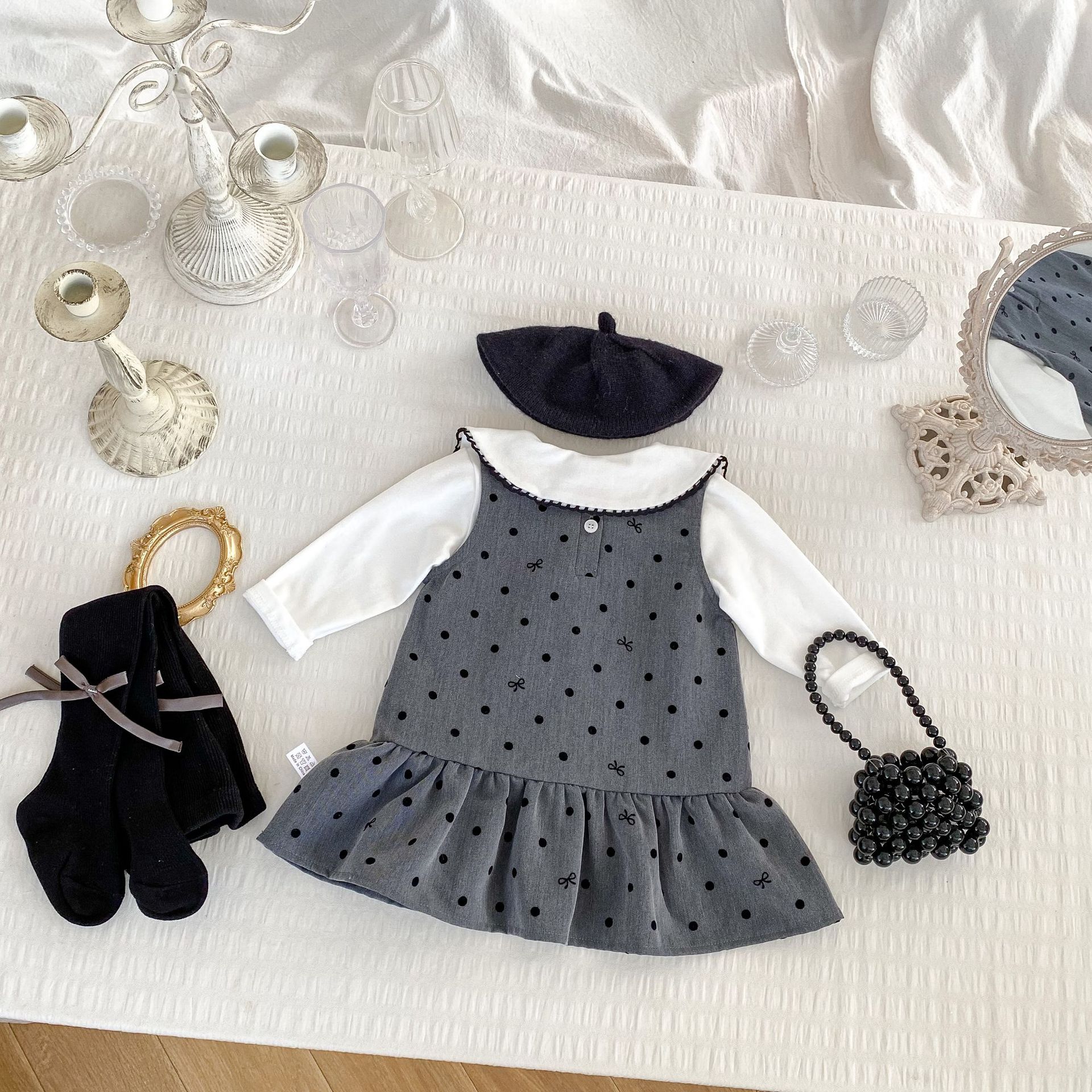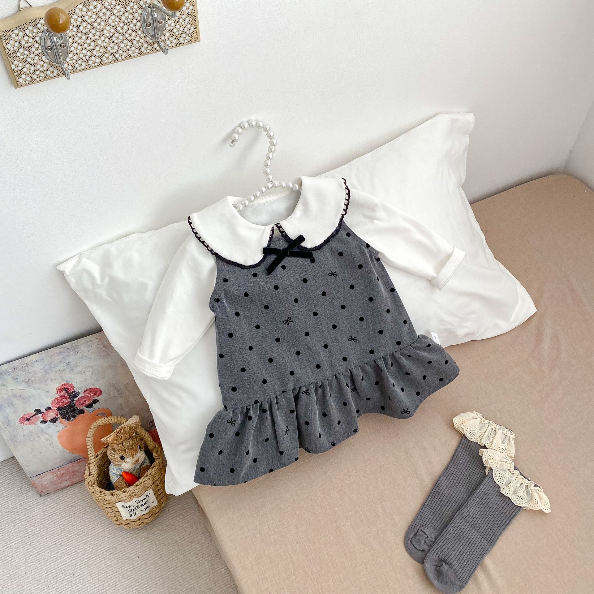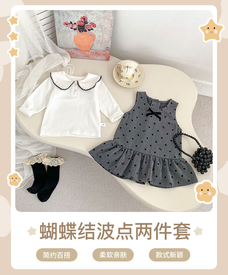 2025 봄 새로운 달콤한 소녀 아기 웨이브 나비 조끼 스커트 인형 칼라 기본 셔츠 투피스 세트스토어 가기