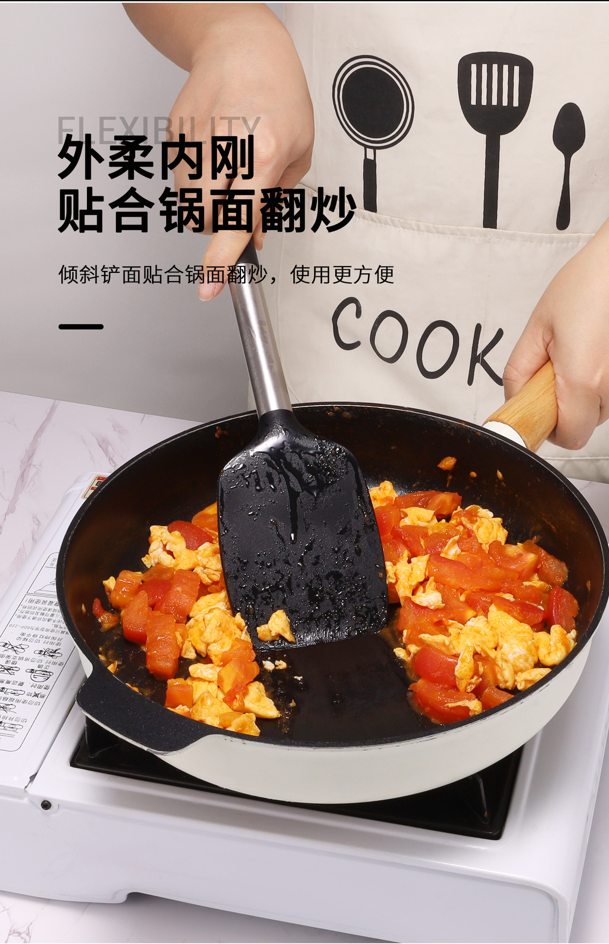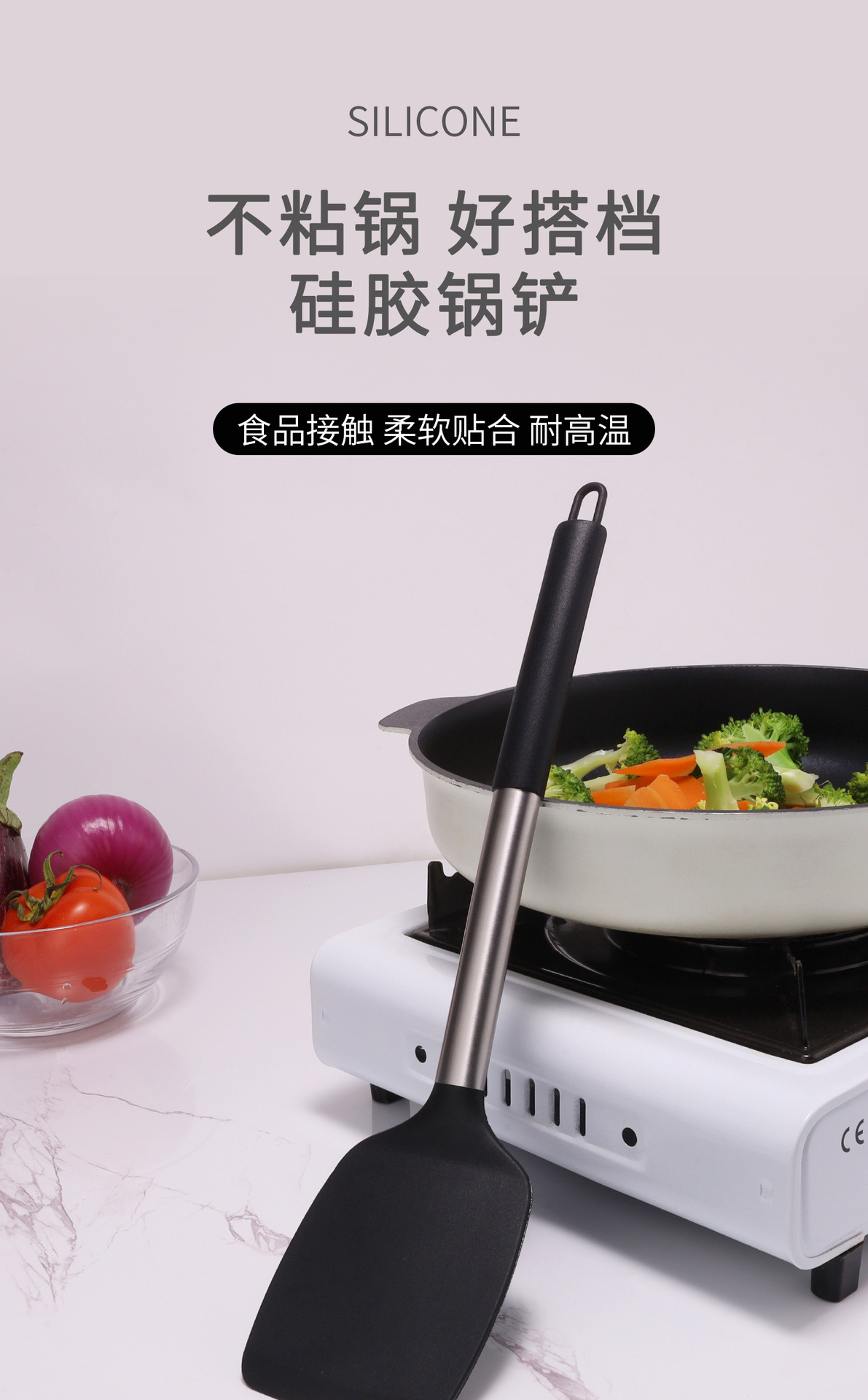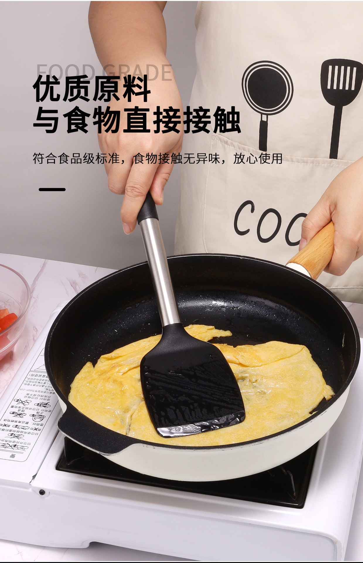 두꺼운 실리콘 주걱 주방 아침 식사 오믈렛 비 스틱 팬 볶음 주걱 가정용 요리 핸들 세트 실리콘 주걱