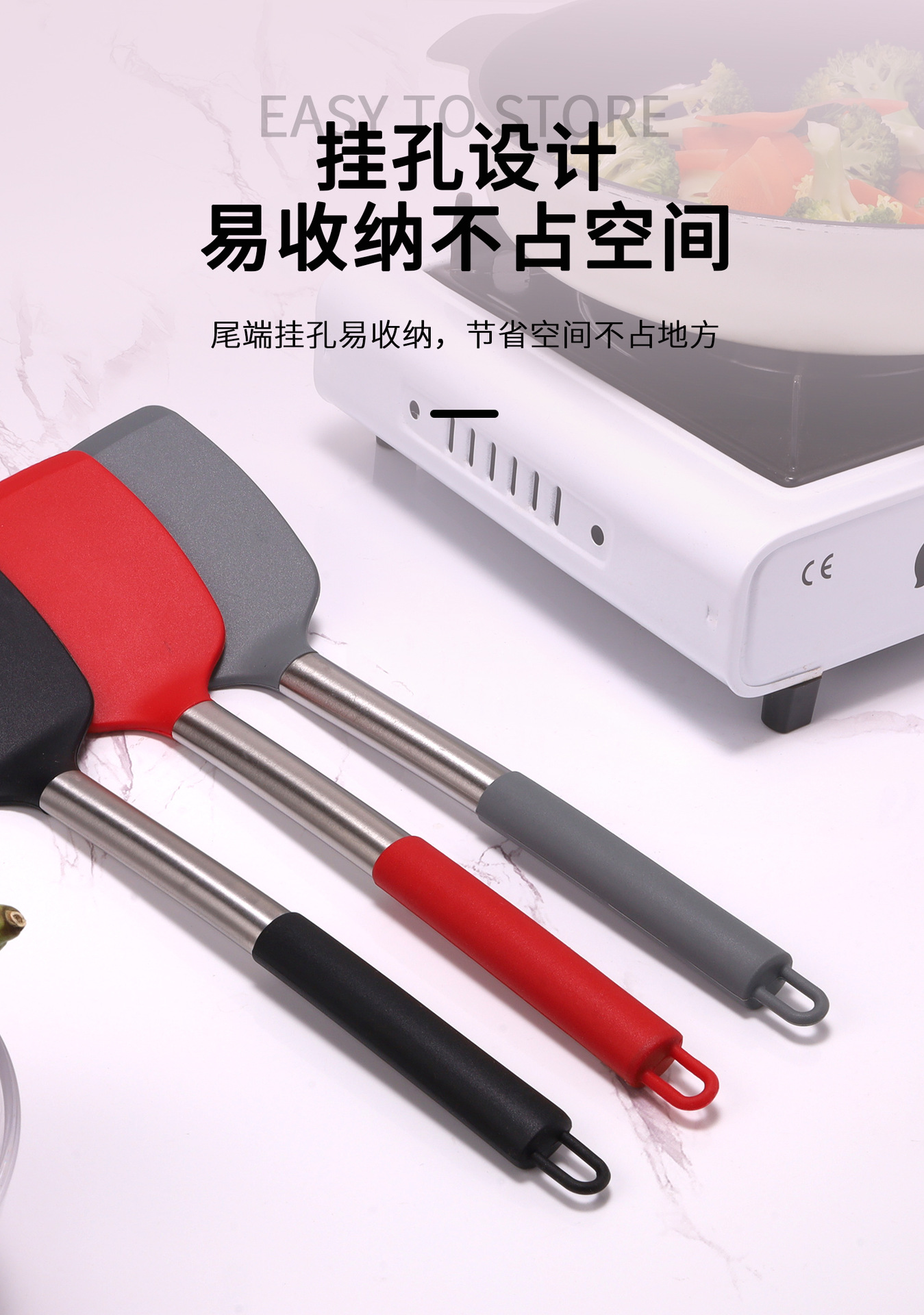 두꺼운 실리콘 주걱 주방 아침 식사 오믈렛 비 스틱 팬 볶음 주걱 가정용 요리 핸들 세트 실리콘 주걱스토어 가기