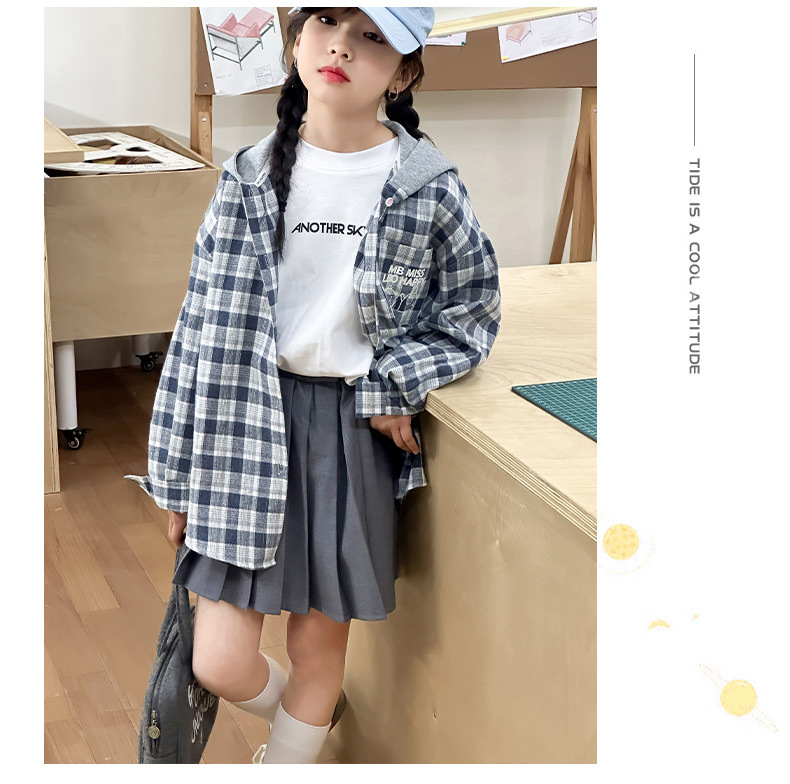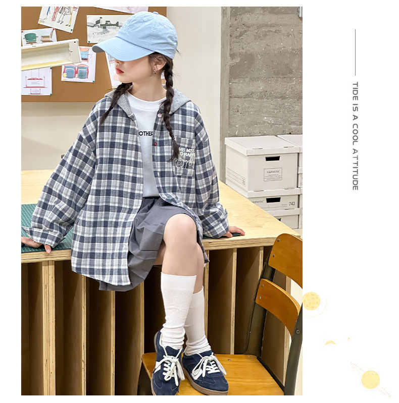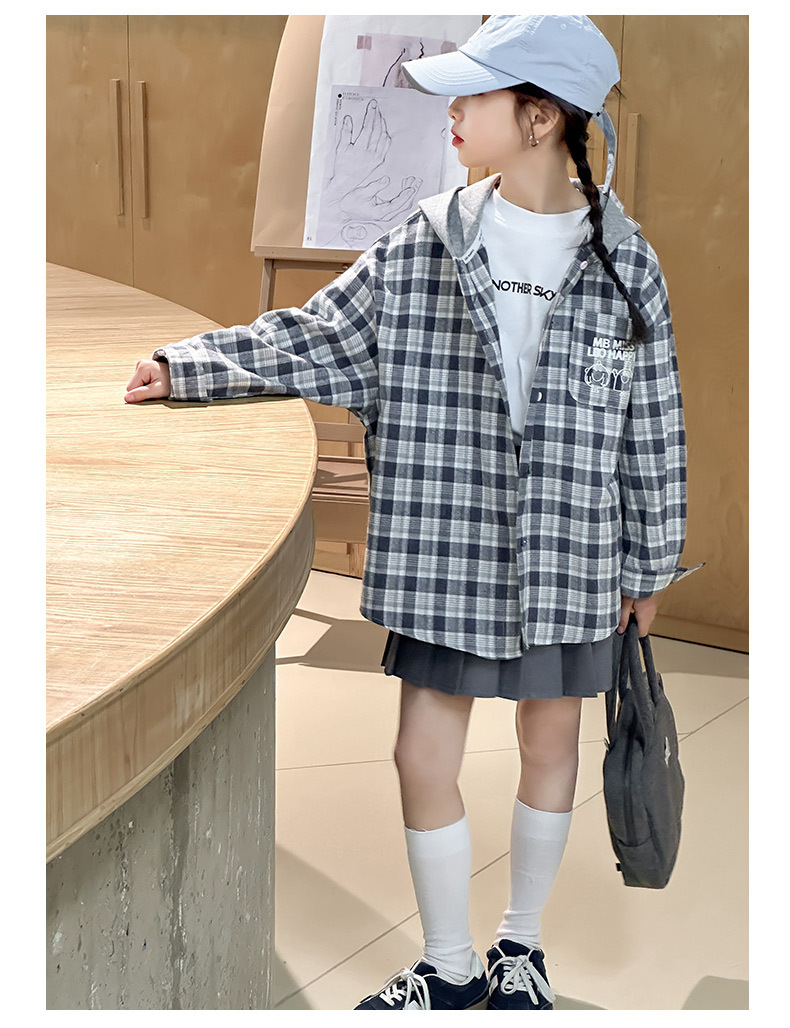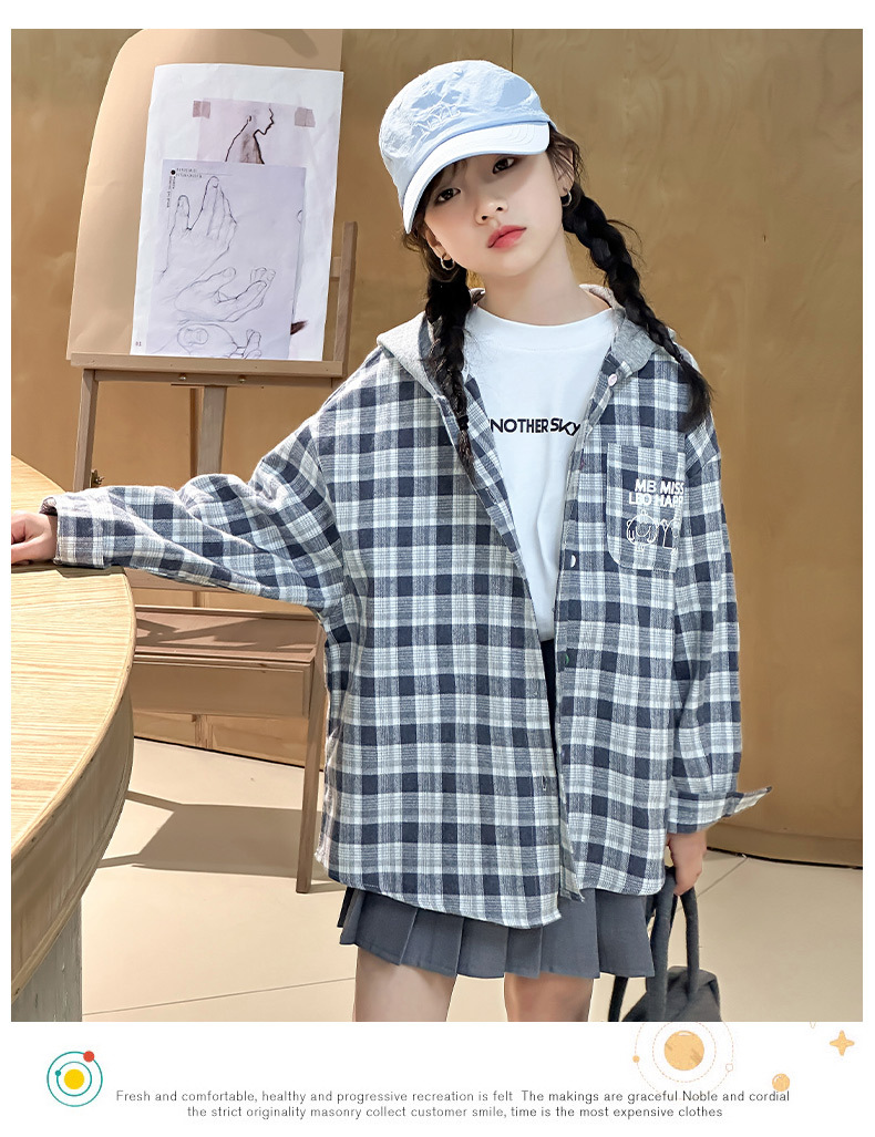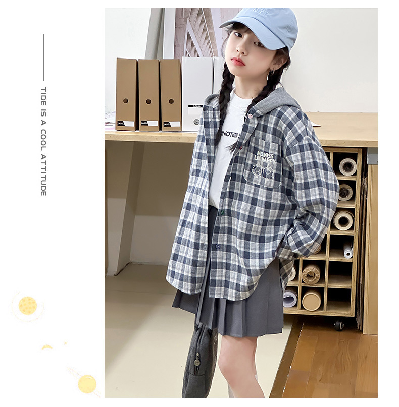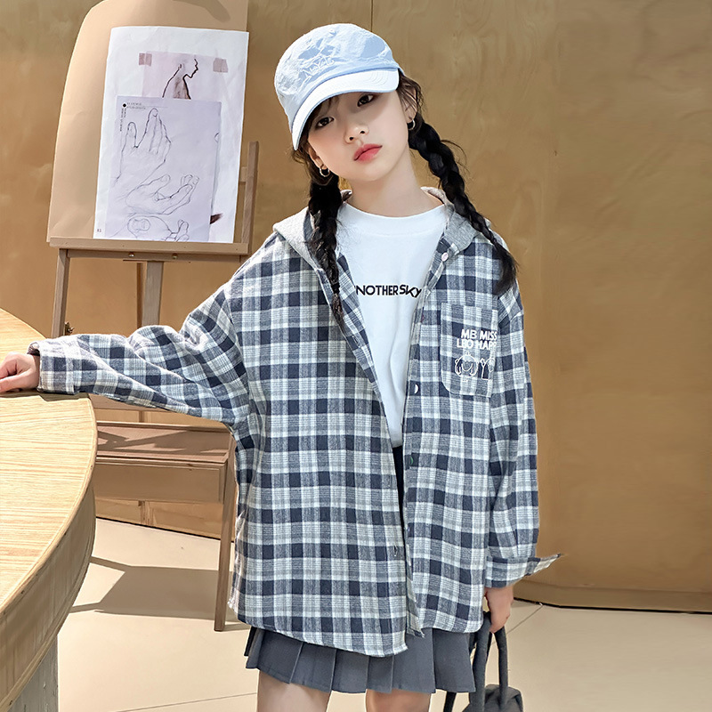 소녀 셔츠 코트 봄 2025 새로운 어린이 서양식 격자 무늬 셔츠 어린이 봄과 가을 캐주얼 후드 탑스토어 가기