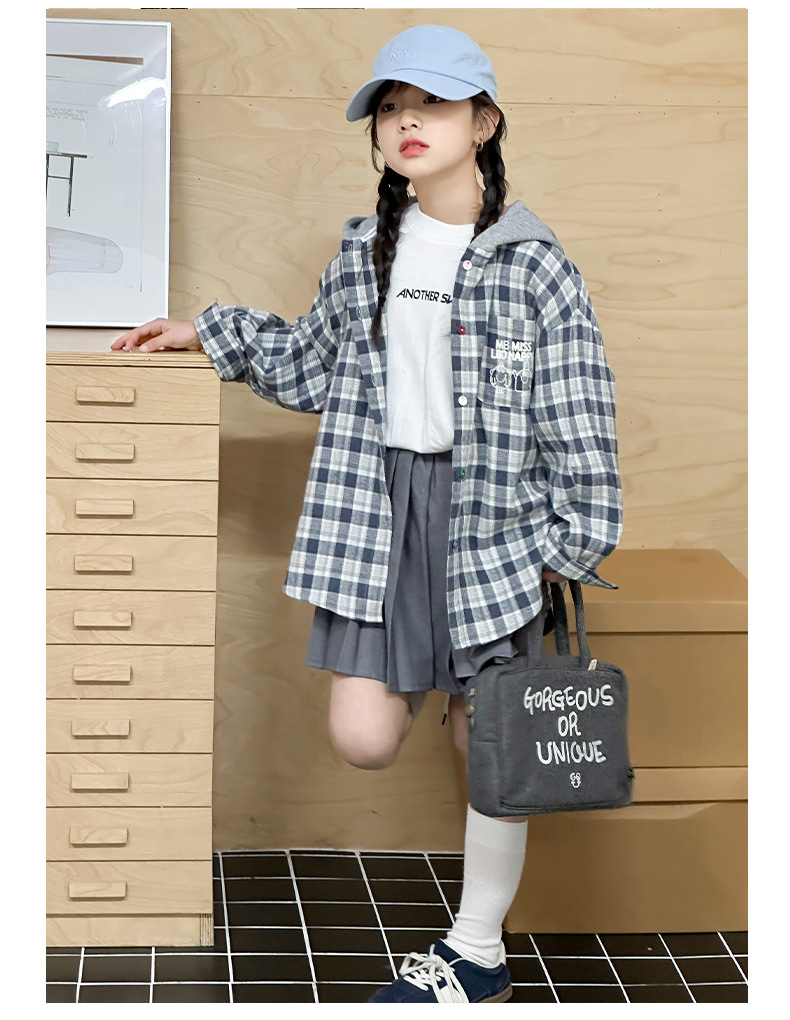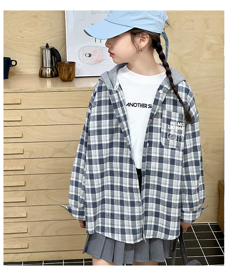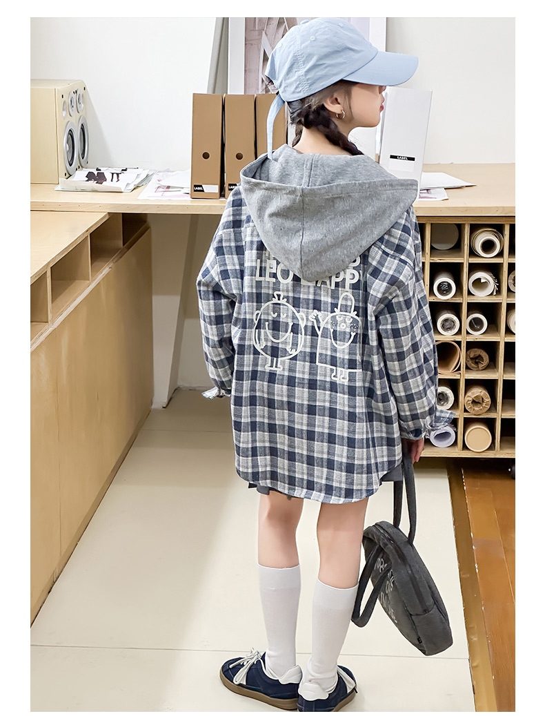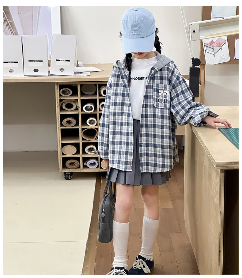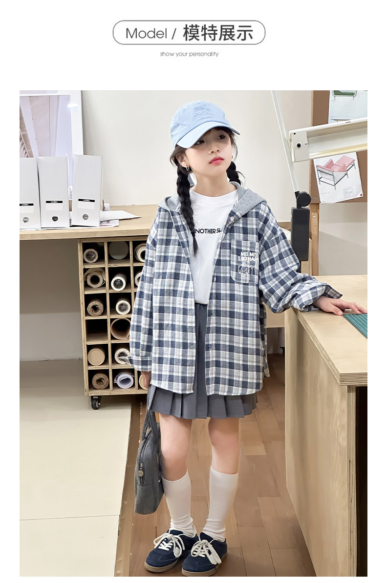 소녀 셔츠 코트 봄 2025 새로운 어린이 서양식 격자 무늬 셔츠 어린이 봄과 가을 캐주얼 후드 탑스토어 가기