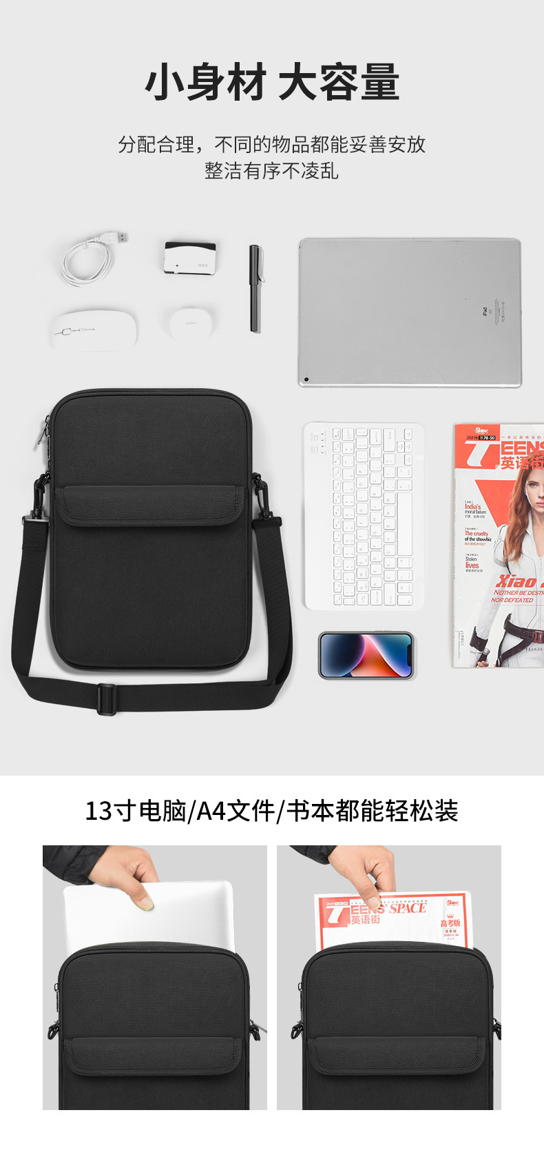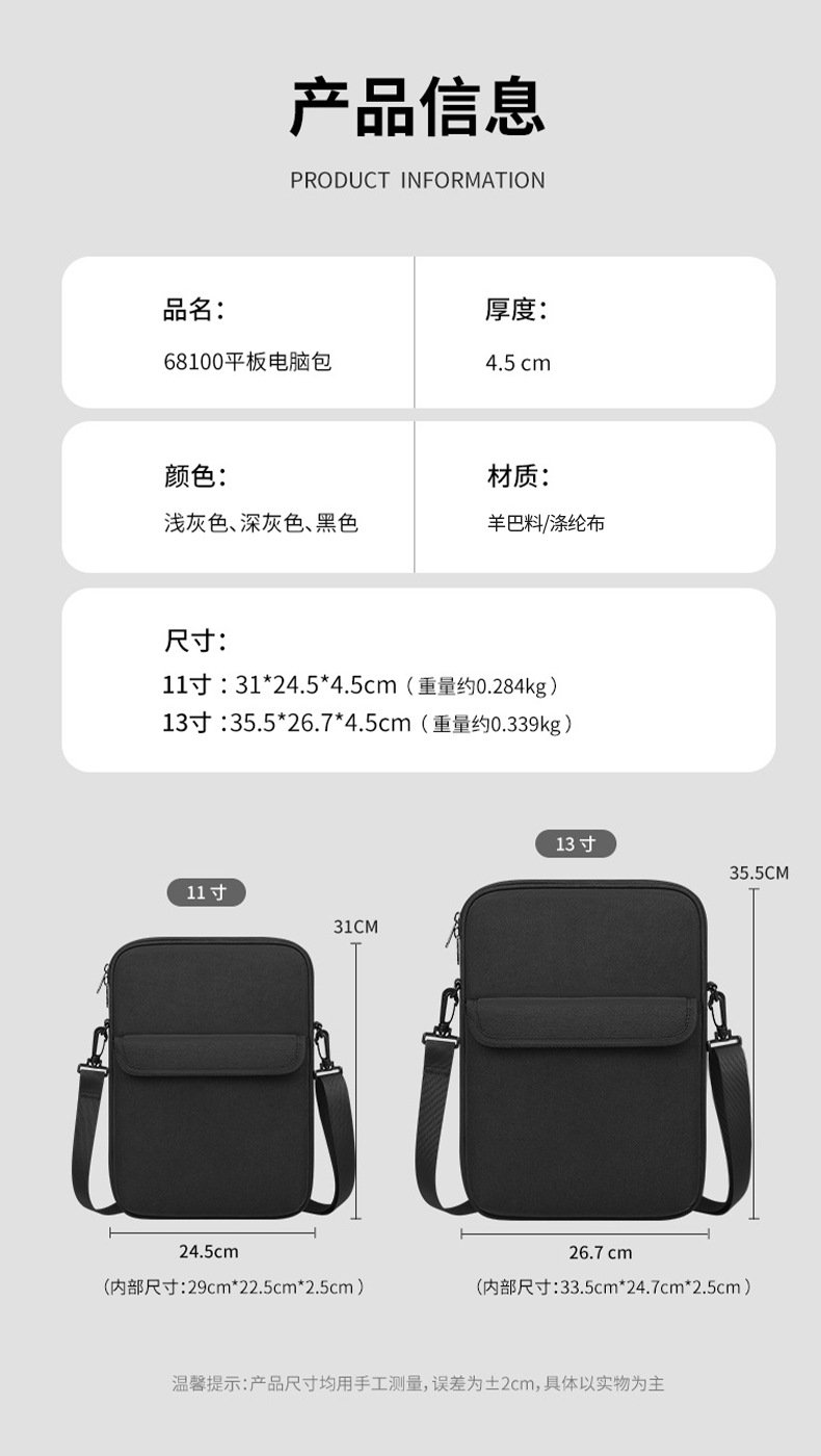 재고 간단한 대용량 크로스 바디 휴대용 태블릿 컴퓨터 가방 방진 방수 휴대용 경량 휴대용 저장 가방