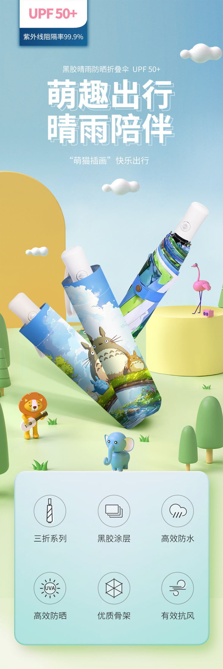 토토로 우산 만화 귀여운 비 이중 사용 자외선 차단 자외선 차단 태양 우산 학생 3 배 파라솔 도매스토어 가기