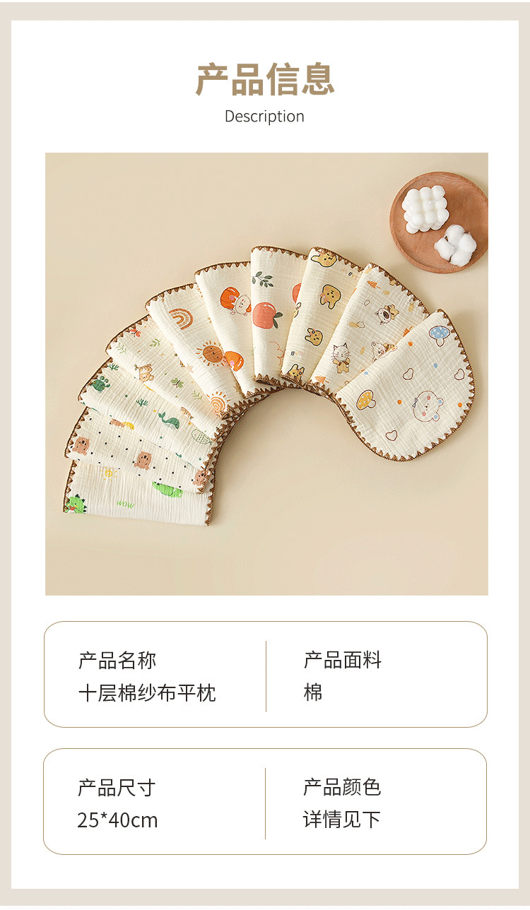 10 층 거즈 구름 시트 베개 신생아 구름 시트 베개 모양의 베개 아기 평면 베개 아기 아기 땀 흡수성 통기성 베개 수건