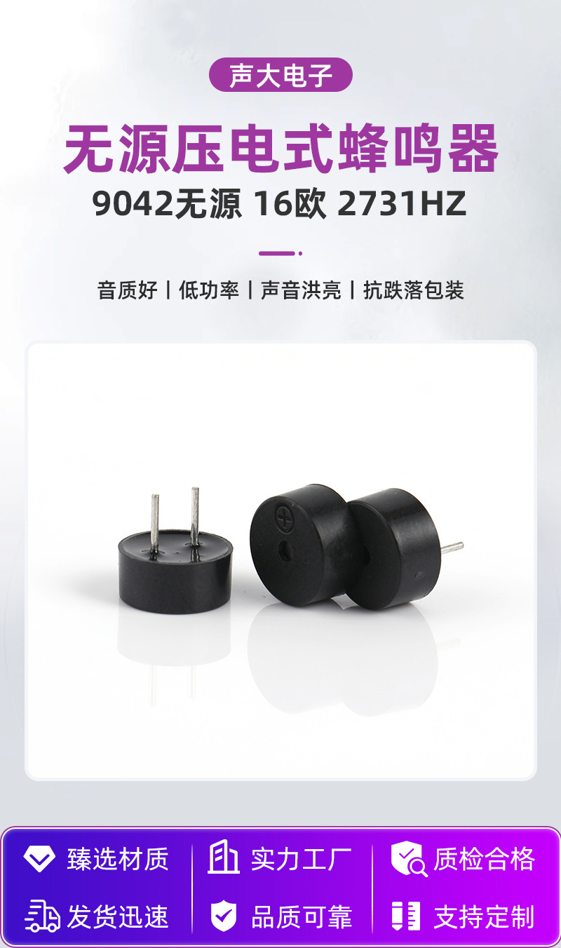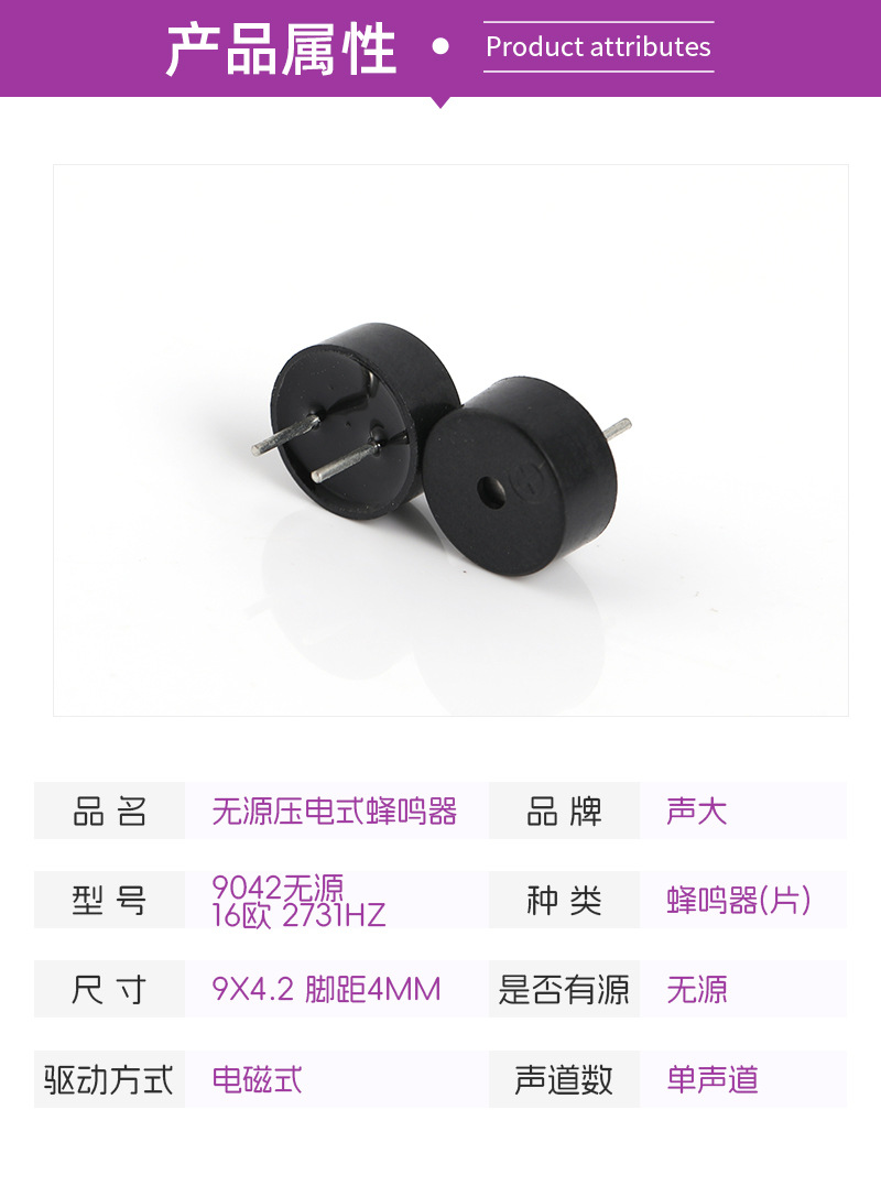 9042 수동 전자기 버저 원형 핀 16 옴 2731HZ 통합 수동 작은 볼륨 버저