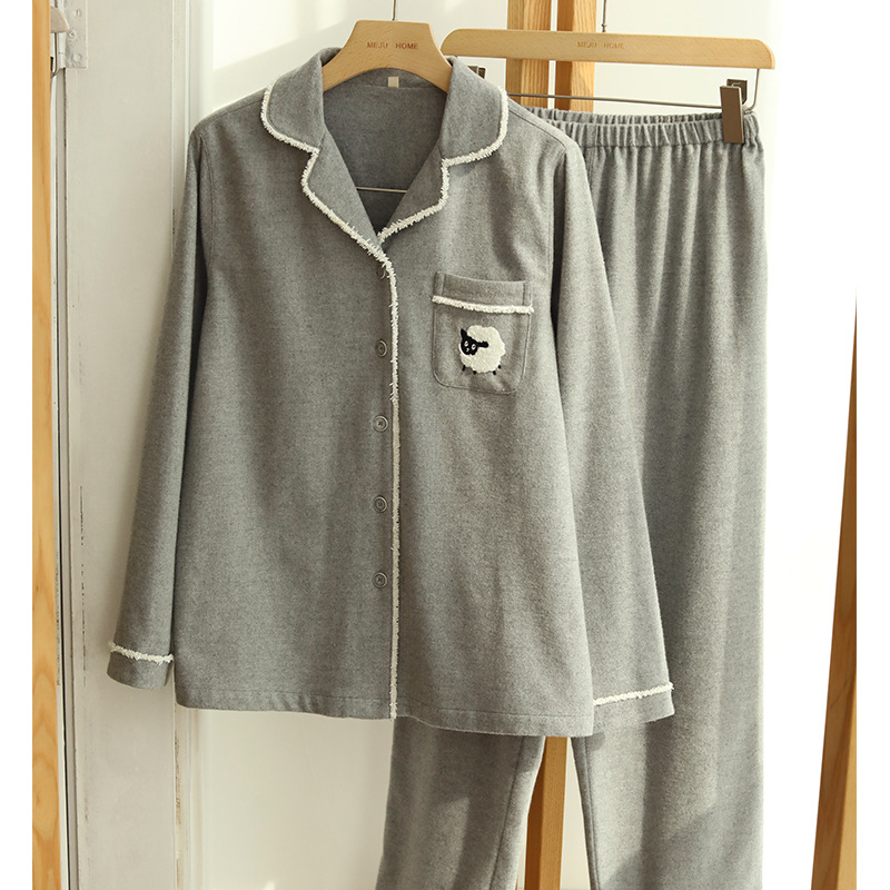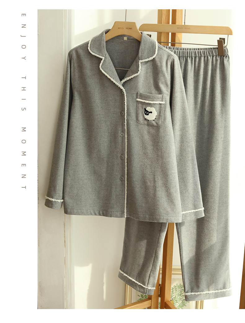 가을과 겨울 커플 새로운 면 브러시 양털 옷깃 긴 소매 바지 홈 옷 캐주얼 잠옷 플러스 사이즈 입을 수 있습니다