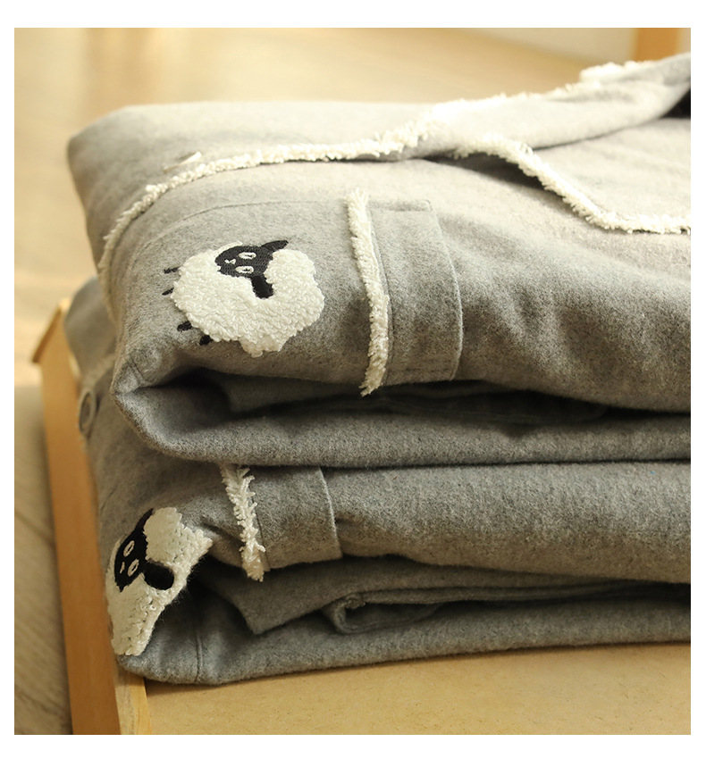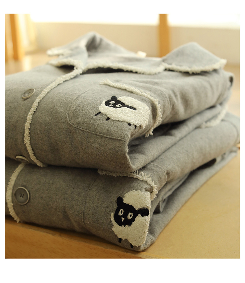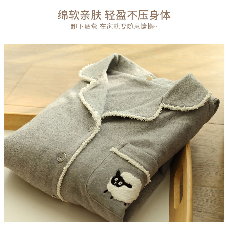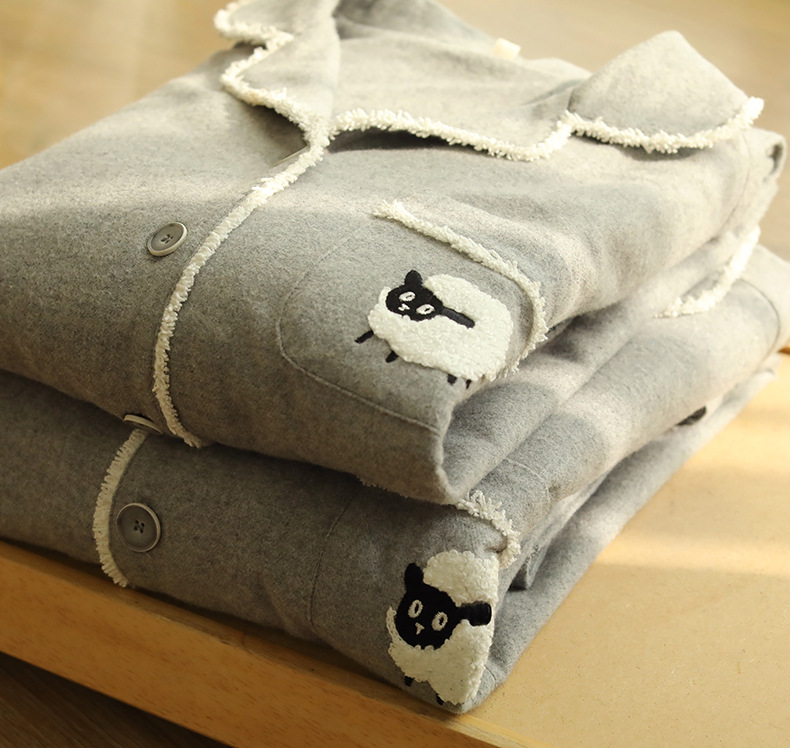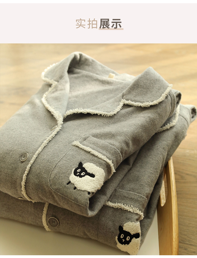 가을과 겨울 커플 새로운 면 브러시 양털 옷깃 긴 소매 바지 홈 옷 캐주얼 잠옷 플러스 사이즈 입을 수 있습니다스토어 가기