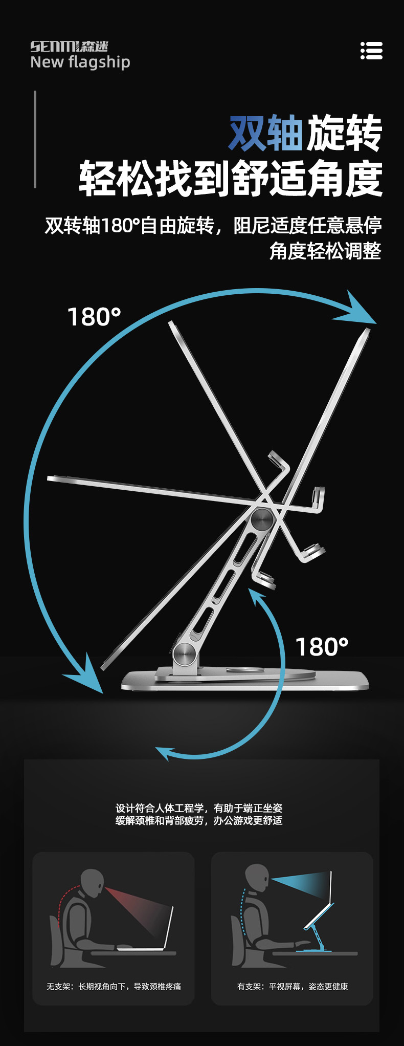 360 도 조정 가능한 알루미늄 합금 노트북 브래킷 컴퓨터 브래킷 플랫 접이식 조절 가능한 열 분산스토어 가기