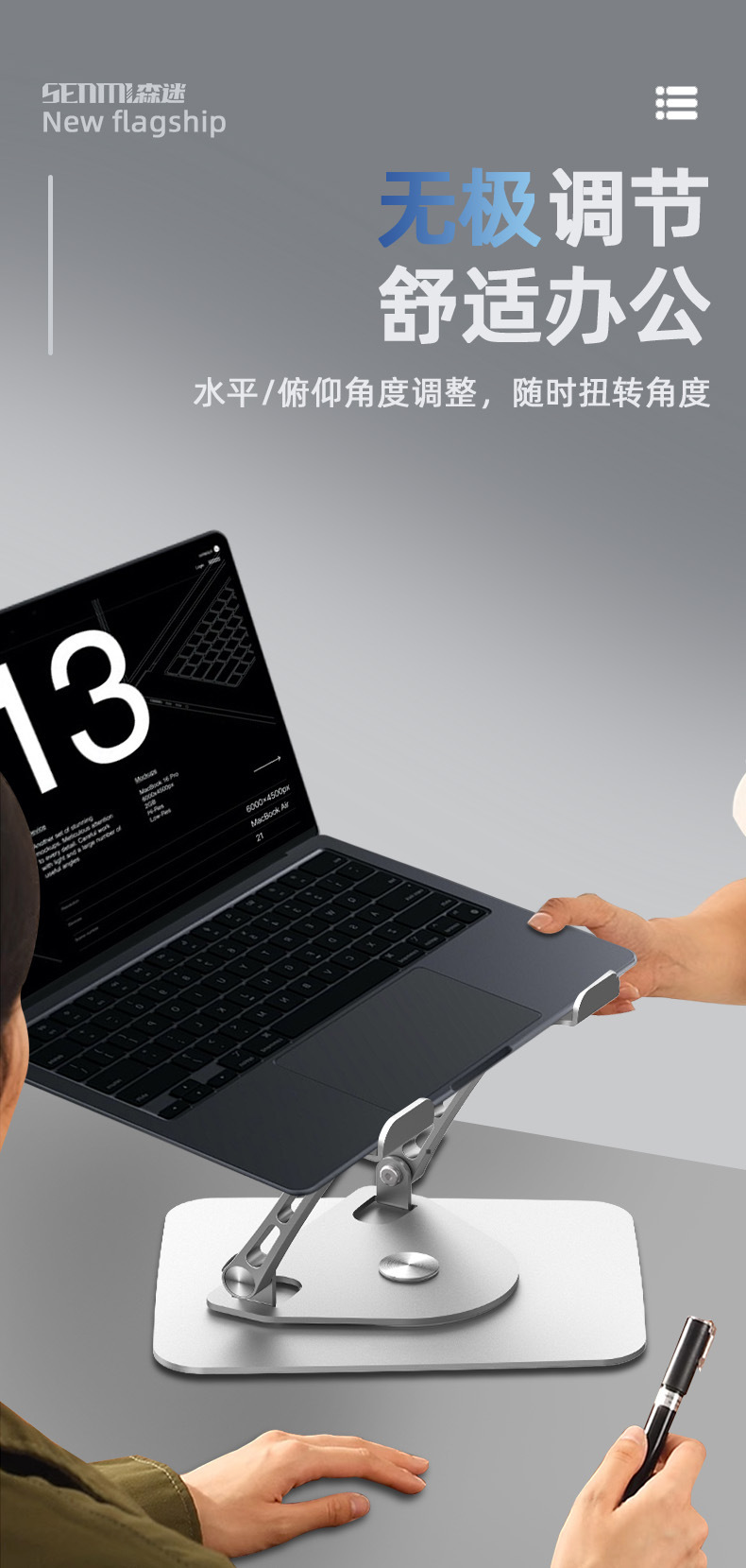 360 도 조정 가능한 알루미늄 합금 노트북 브래킷 컴퓨터 브래킷 플랫 접이식 조절 가능한 열 분산