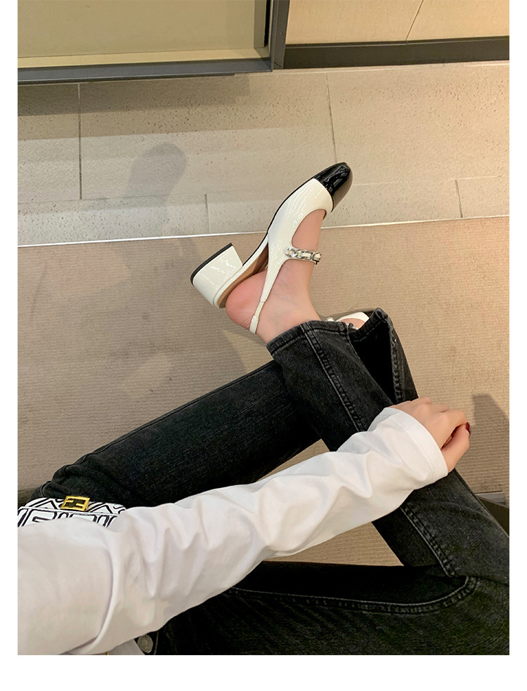 재고 샤넬 스타일 우아한 통근 두꺼운 힐 스퀘어 헤드 버클 펄 체인 메리 제인 여성을위한 캐주얼 올 매치 싱글 레이어 신발스토어 가기
