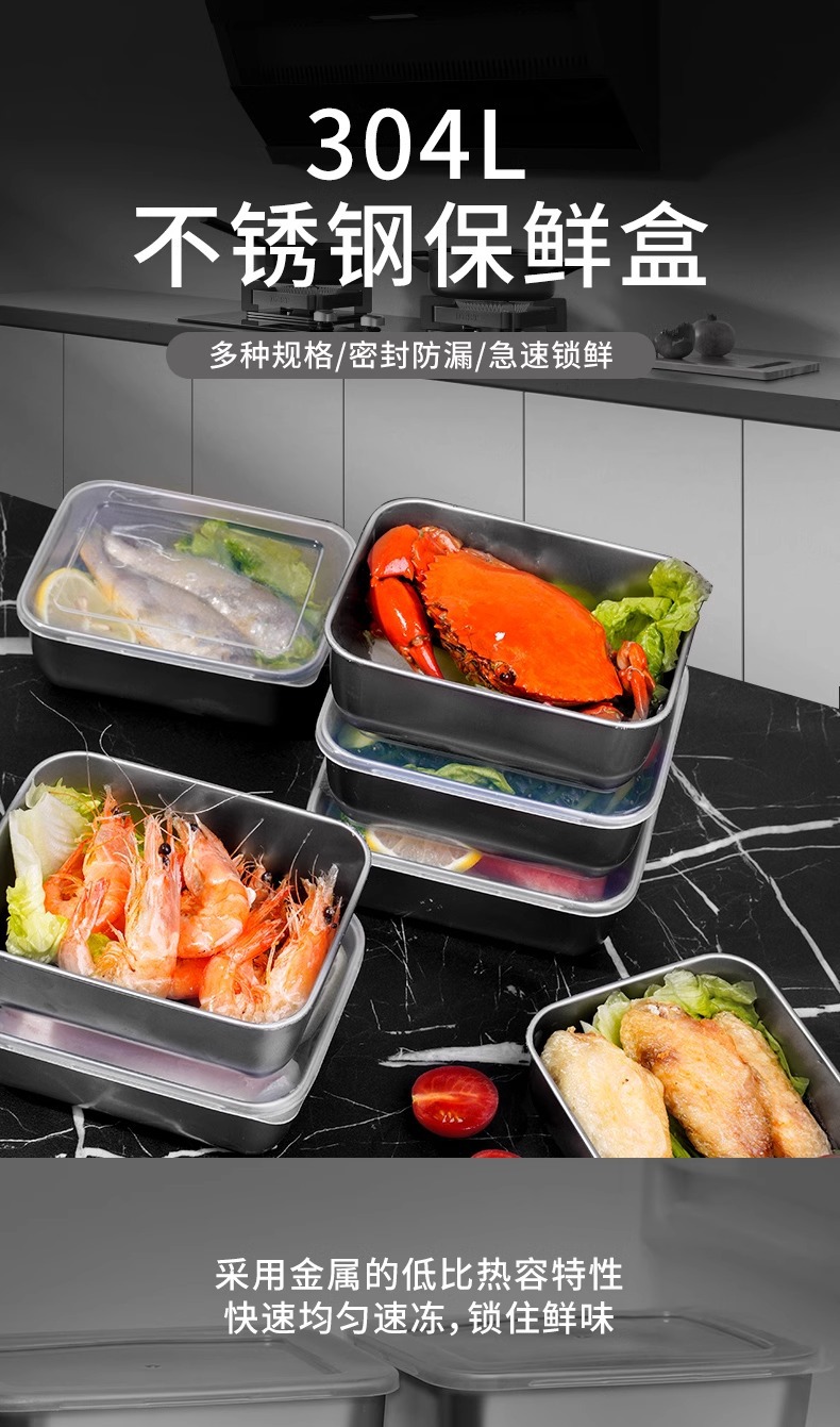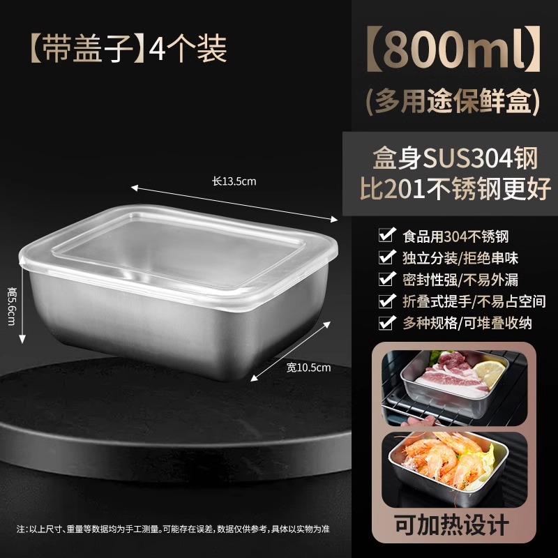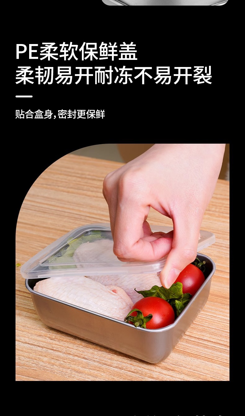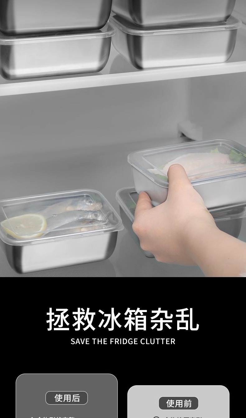 스테인레스 스틸 신선한 유지 보울 뚜껑 가정용 냉장고 저장 신선한 보관 상자 주방 광장 식품 재료 분배 상자 도시락