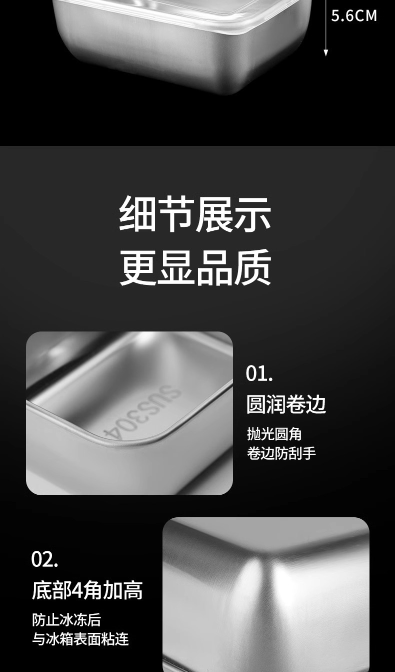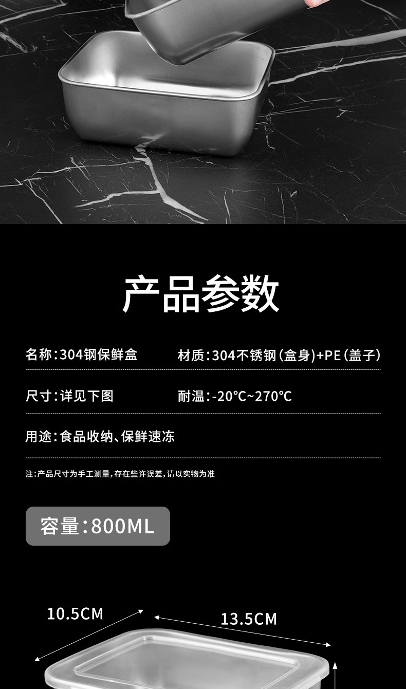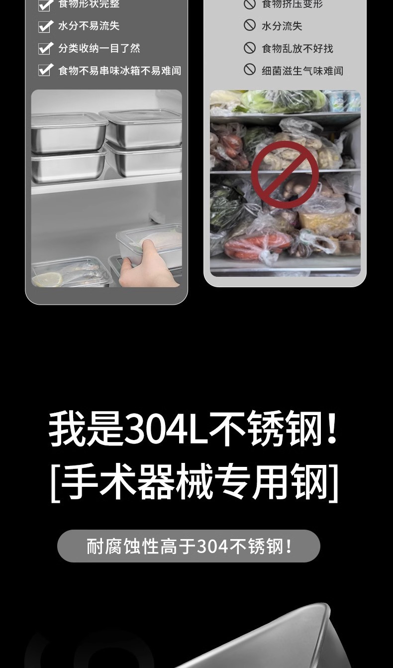 스테인레스 스틸 신선한 유지 보울 뚜껑 가정용 냉장고 저장 신선한 보관 상자 주방 광장 식품 재료 분배 상자 도시락