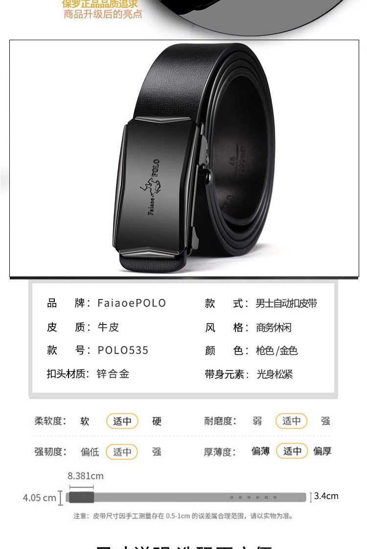 Paul New Men's Belt 정품 가죽 자동 버클 벨트 남성용 트렌디 비즈니스 중년 및 젊은 캐주얼 순수 카우보이 벨트