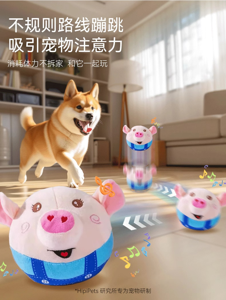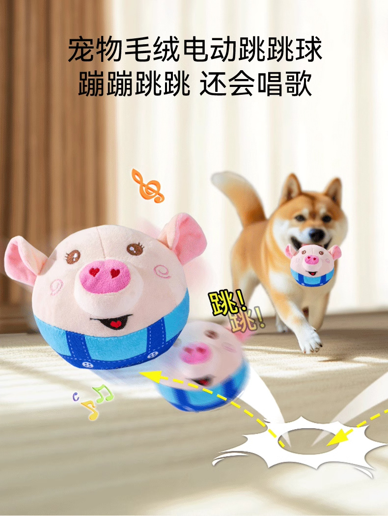 개 봉제 돼지 장난감 전기 점프 볼 노래 Bounce USB 충전식 애완 동물 고양이 대화 형 장난감스토어 가기