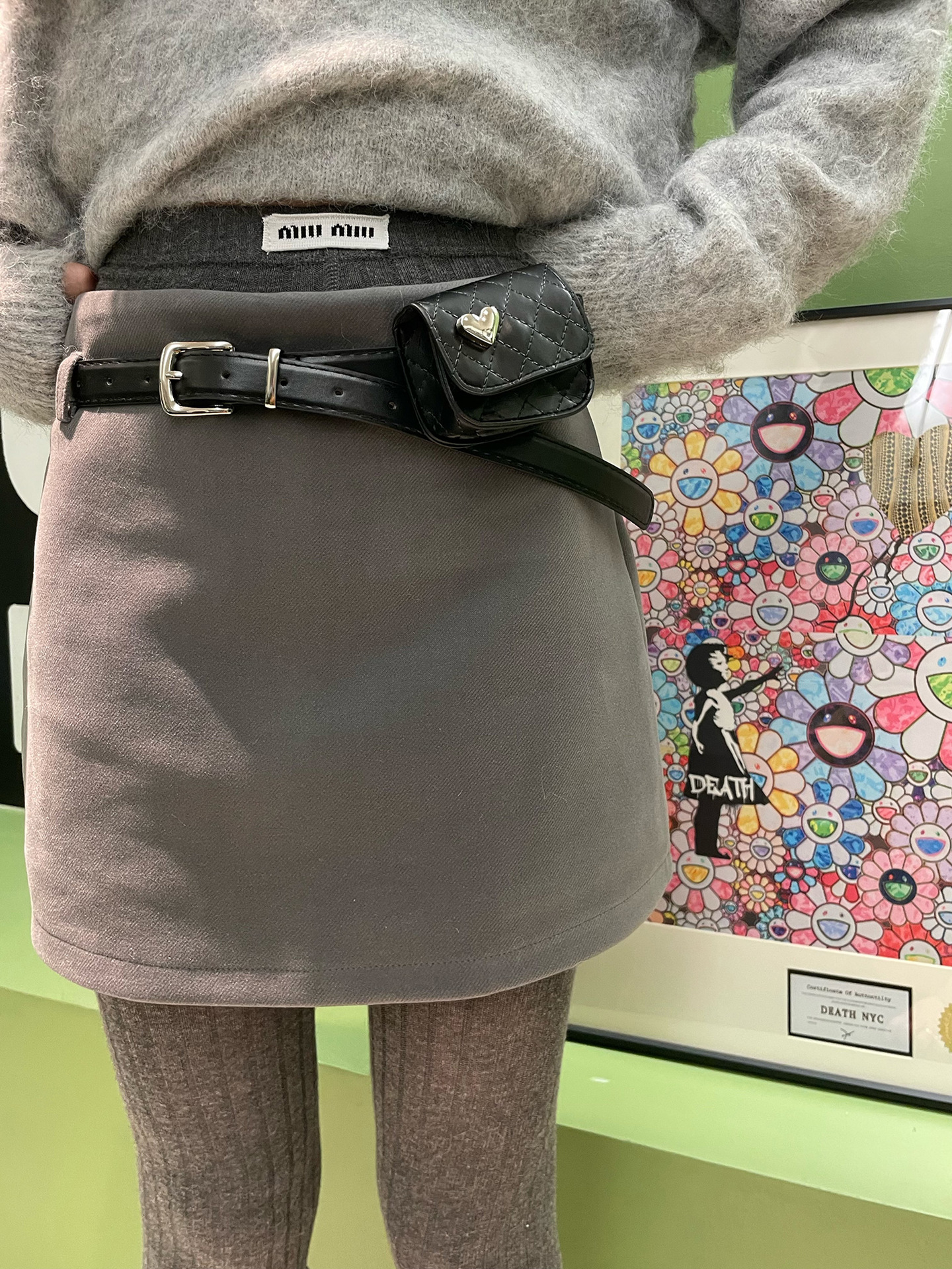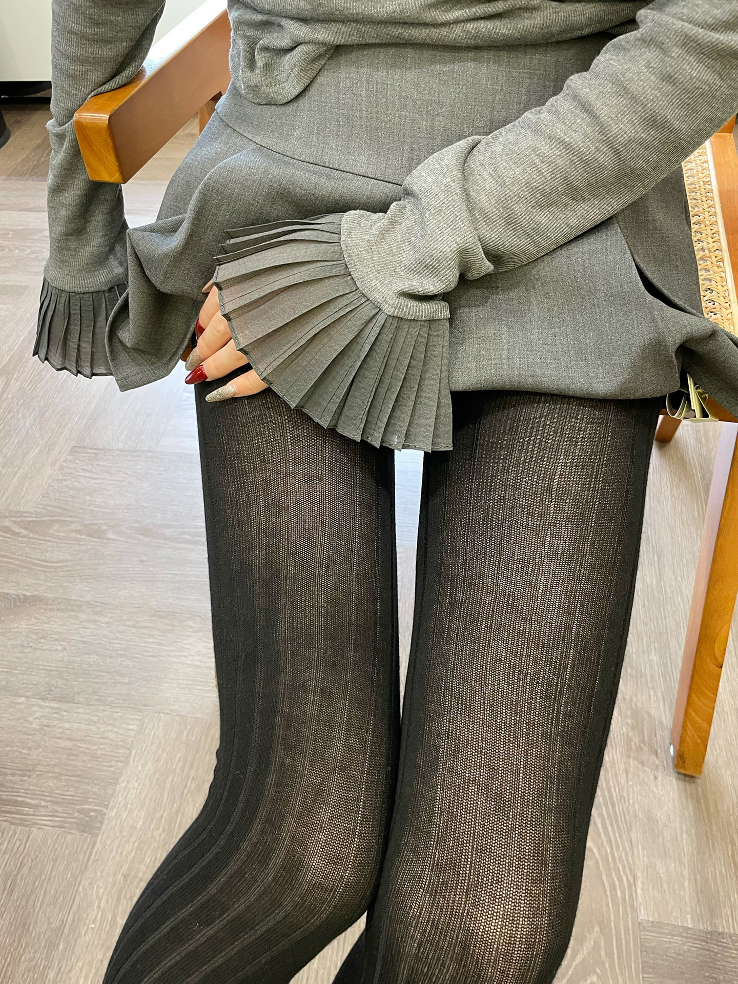한국 Miu Miu Feng 고급 그레이 핏 와이드 패셔너블 베이스 양말 얇은 살 관통 면 슬리밍 팬티 스타킹 스프링스토어 가기