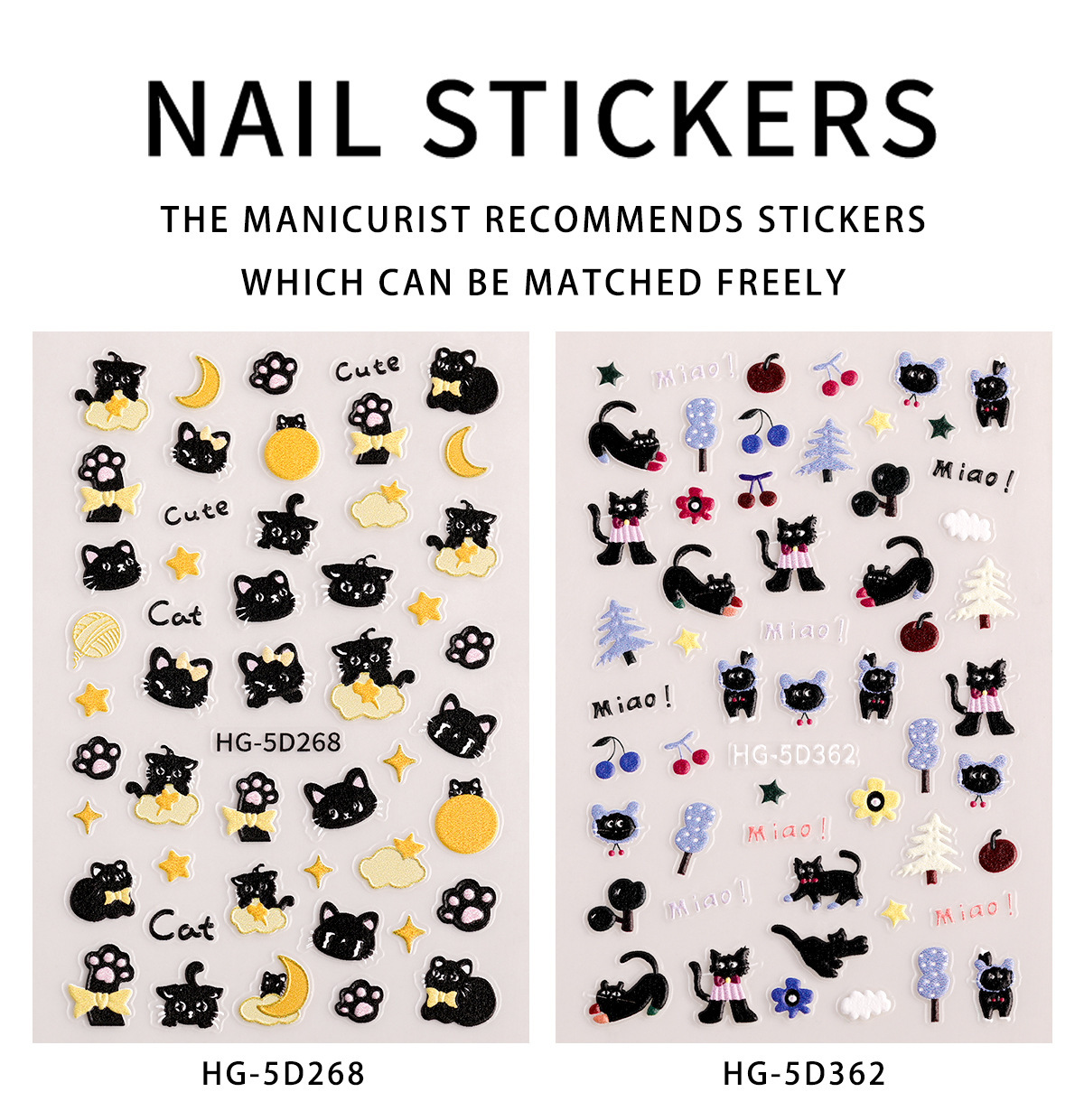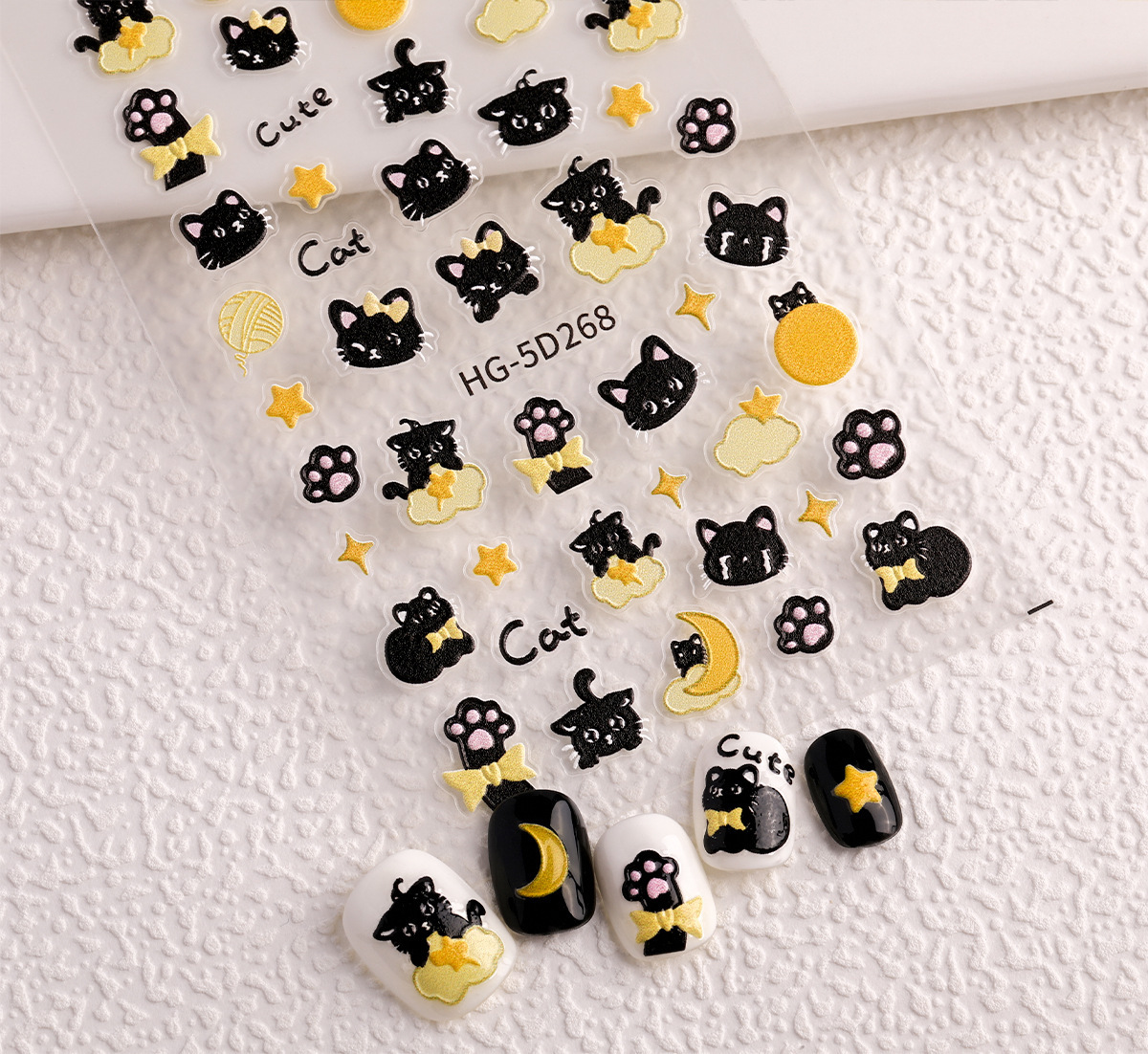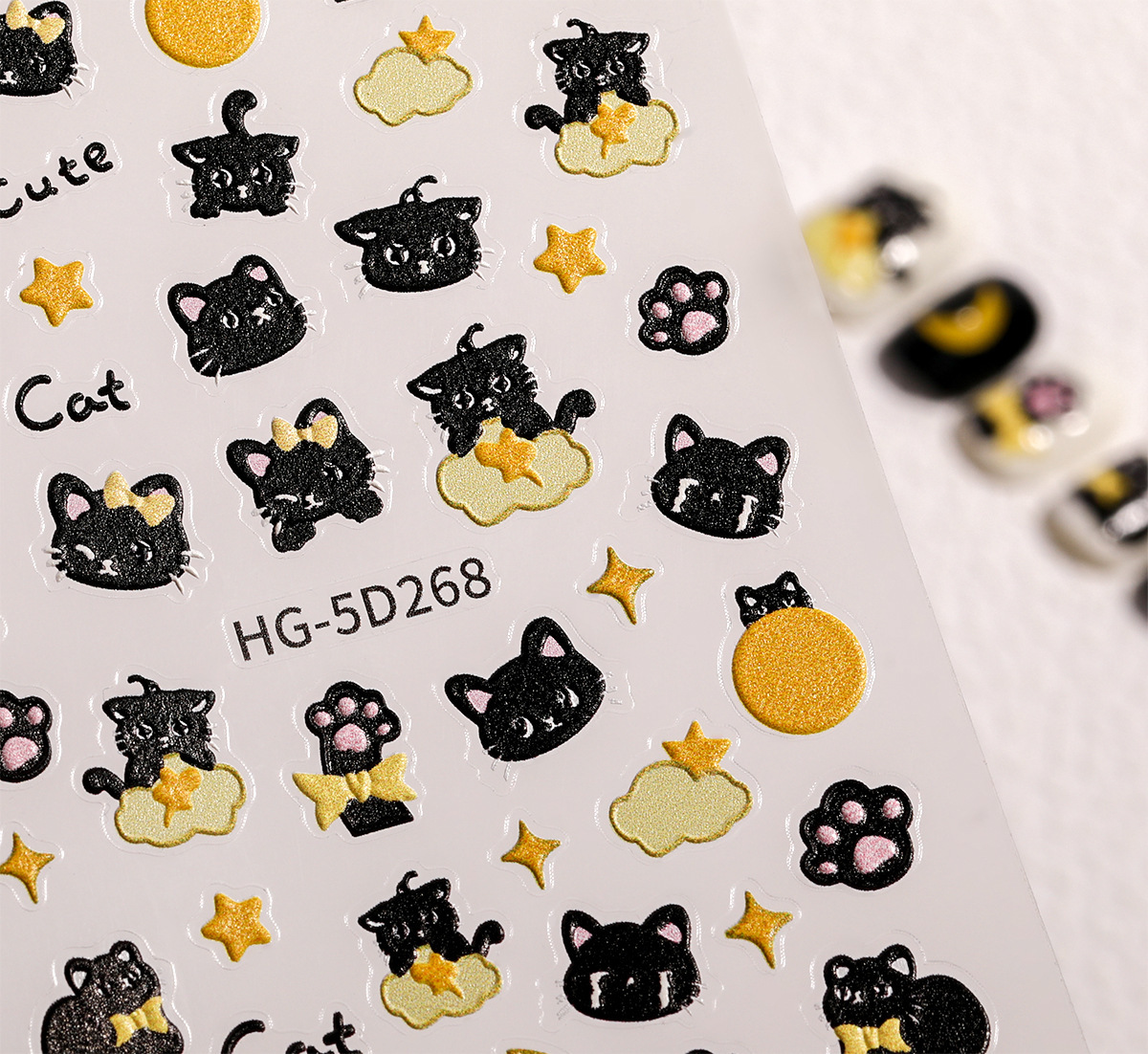 Ins 검은 고양이 구호 네일 아트 스티커 귀여운 만화 스타 문 검은 고양이 네일 스티커 보석