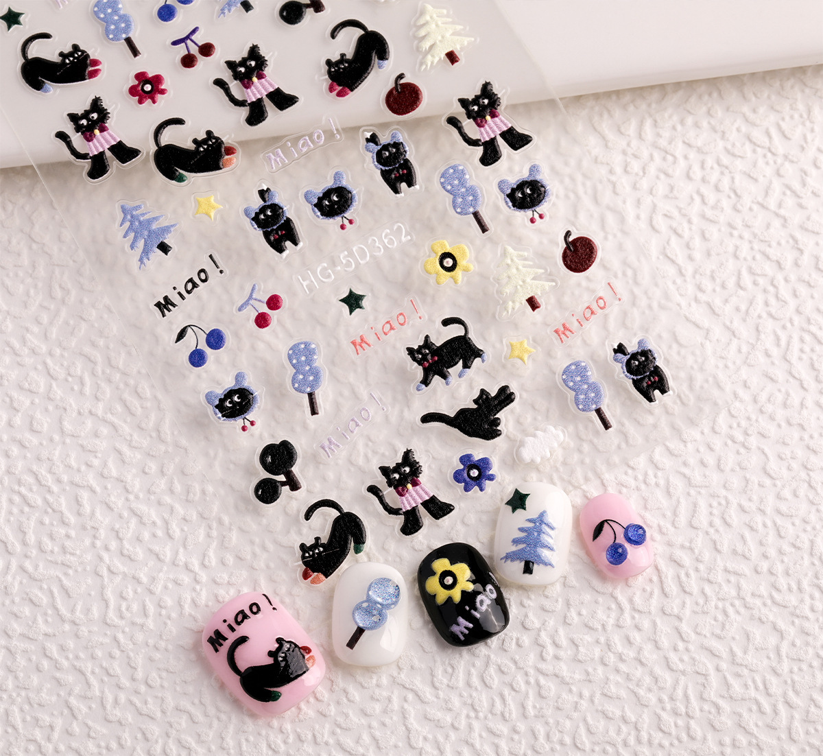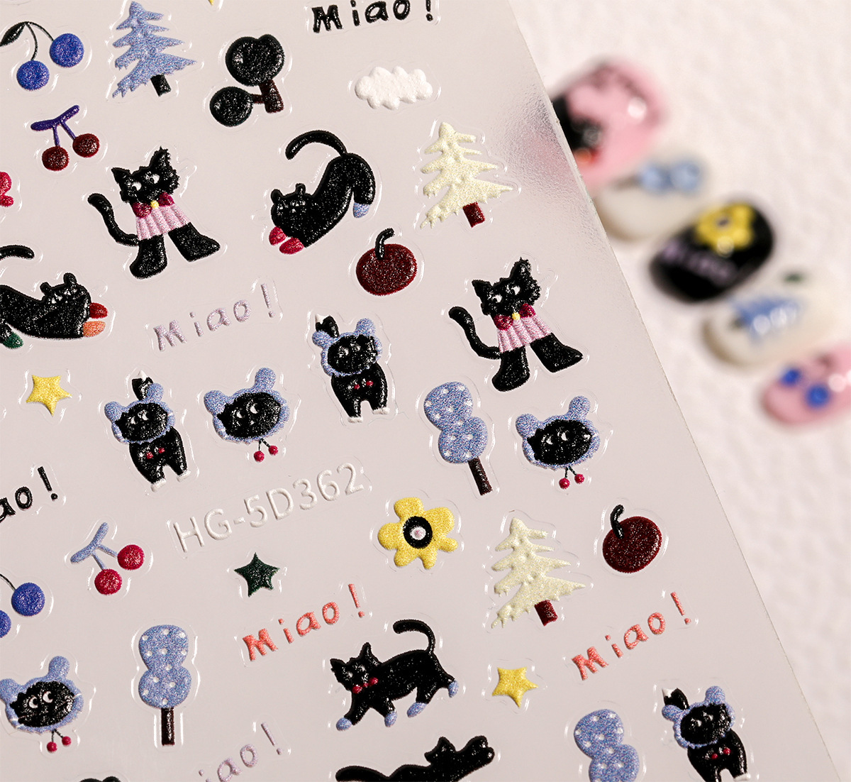 Ins 검은 고양이 구호 네일 아트 스티커 귀여운 만화 스타 문 검은 고양이 네일 스티커 보석스토어 가기