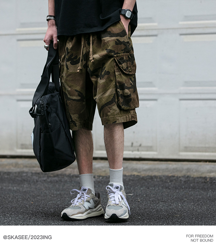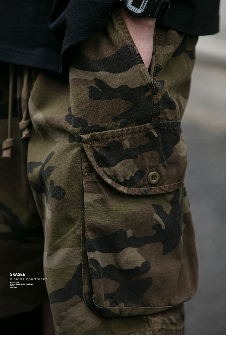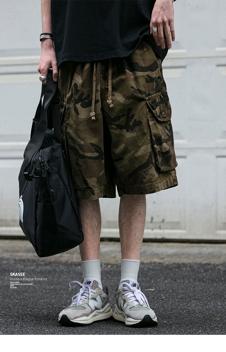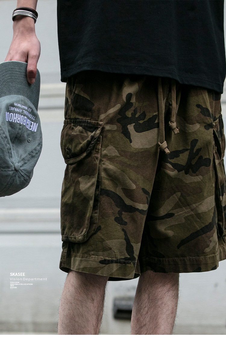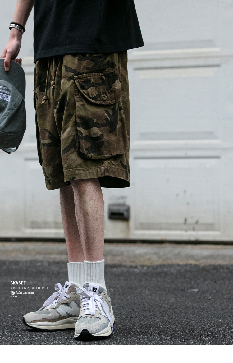 빈티지 오버홀 위장 반바지 남자 여름 미국 무거운 트렌디 느슨한 올 매치 바지 스트리트 커플 바지