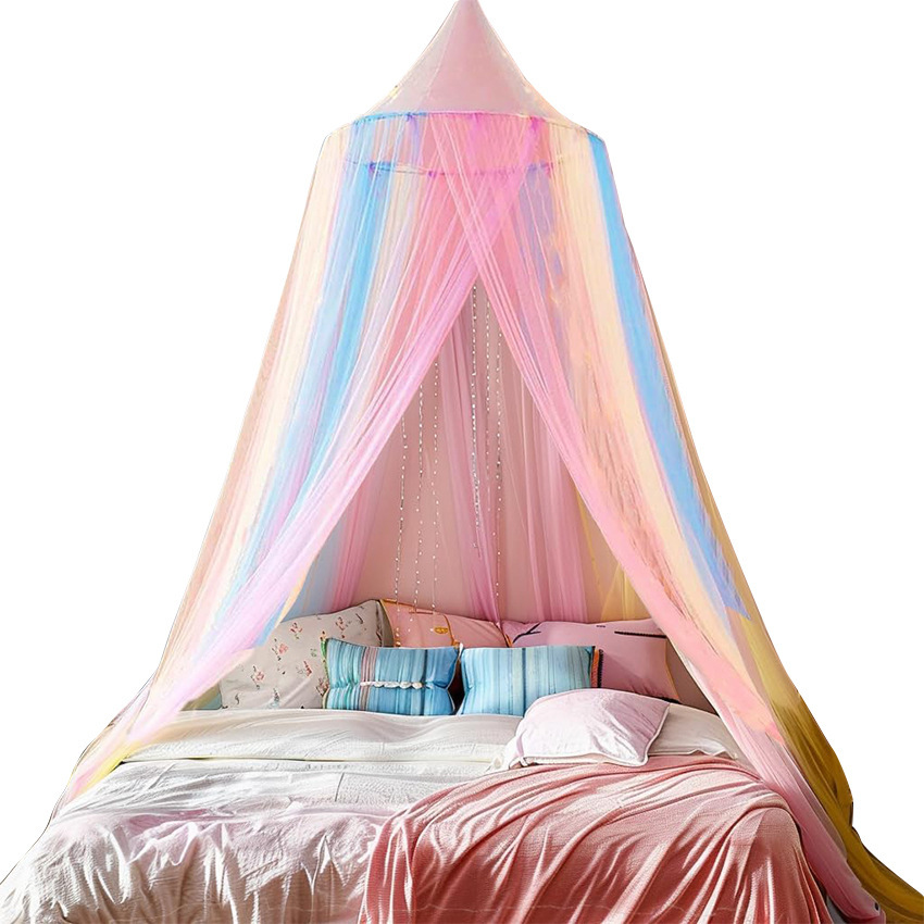새로운 설치 무료 돔 다채로운 공주 모기장 가구 더블 침대 천장 침대 맨틀 침대 원사 두꺼운 침대 커튼스토어 가기
