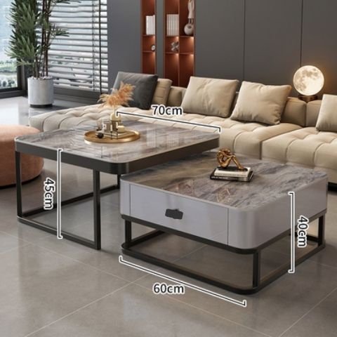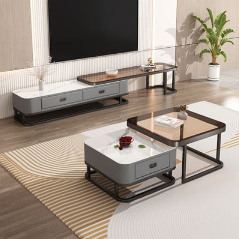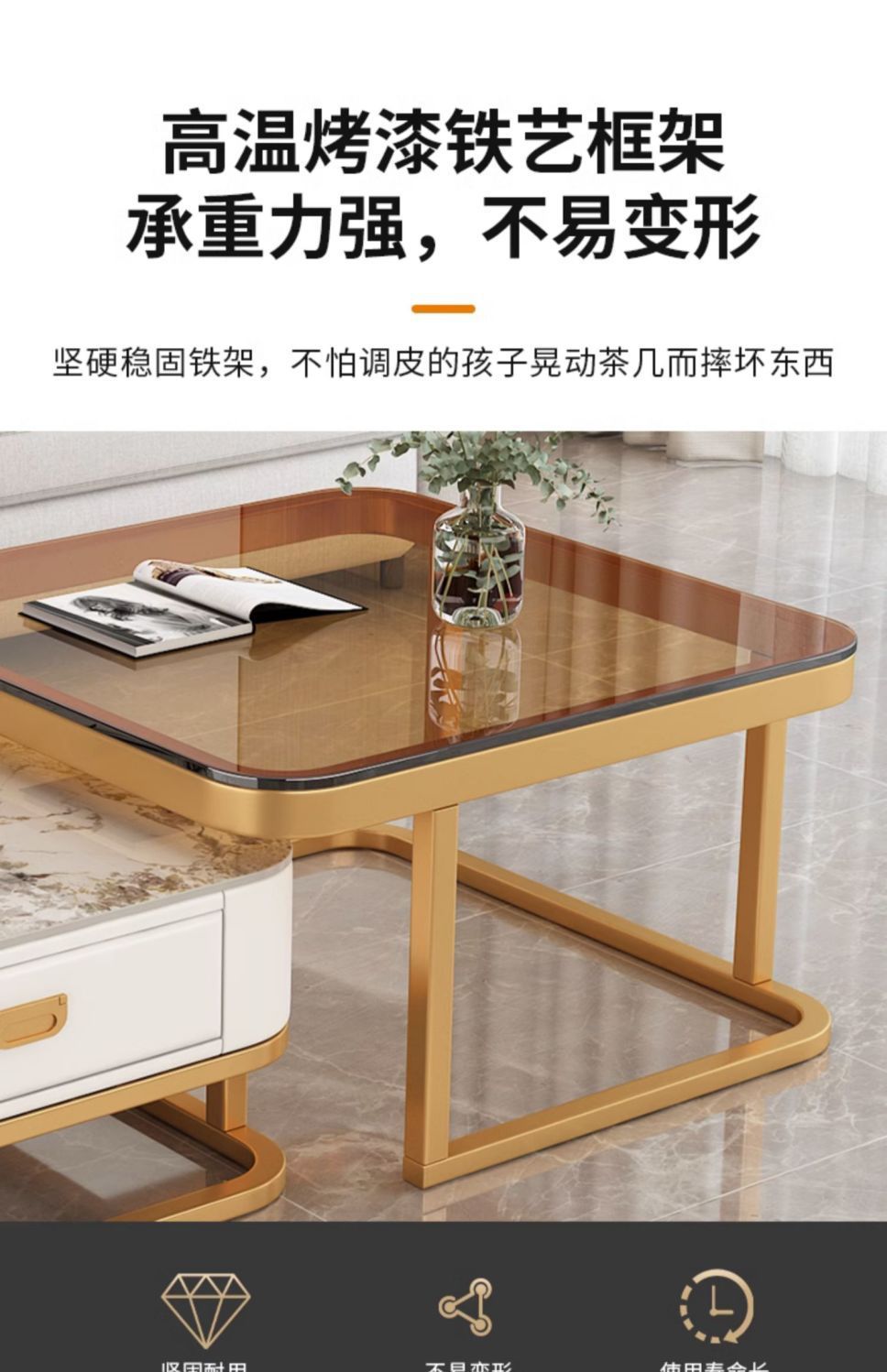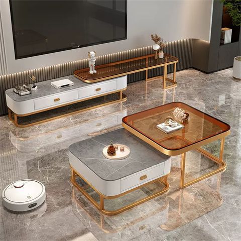 스퀘어 커피 테이블 거실 가정용 작은 아파트 현대 밝은 표면 암판 빛 고급 인터넷 유명 인사 유리 커피 테이블 TV 캐비닛 조합스토어 가기