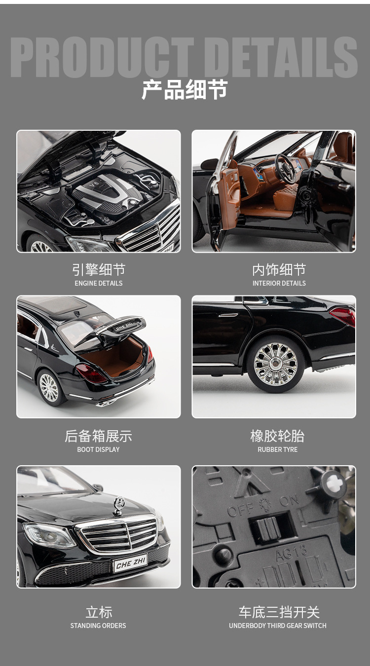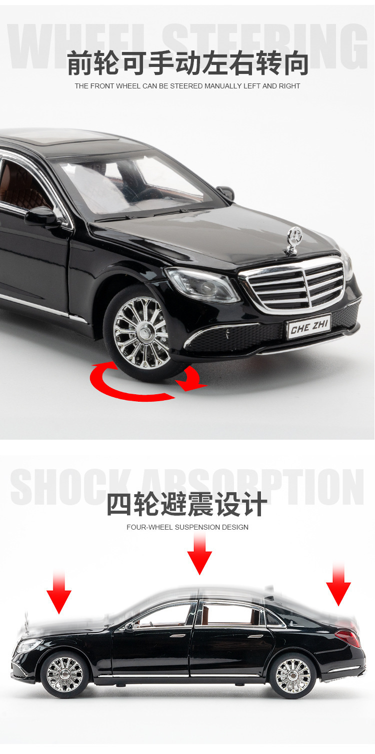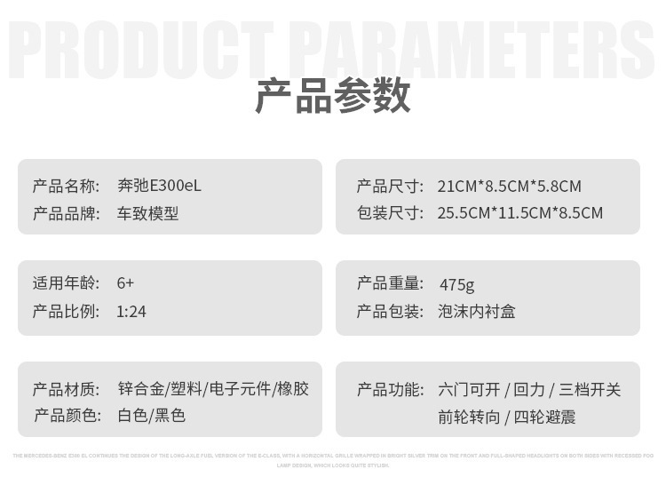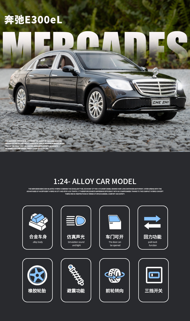 1:24 합금 빅 벤 E300L 자동차 모델 백 포스 사운드 및 라이트 뮤직 6 도어 장난감 자동차 모델 장식품 컬렉션스토어 가기